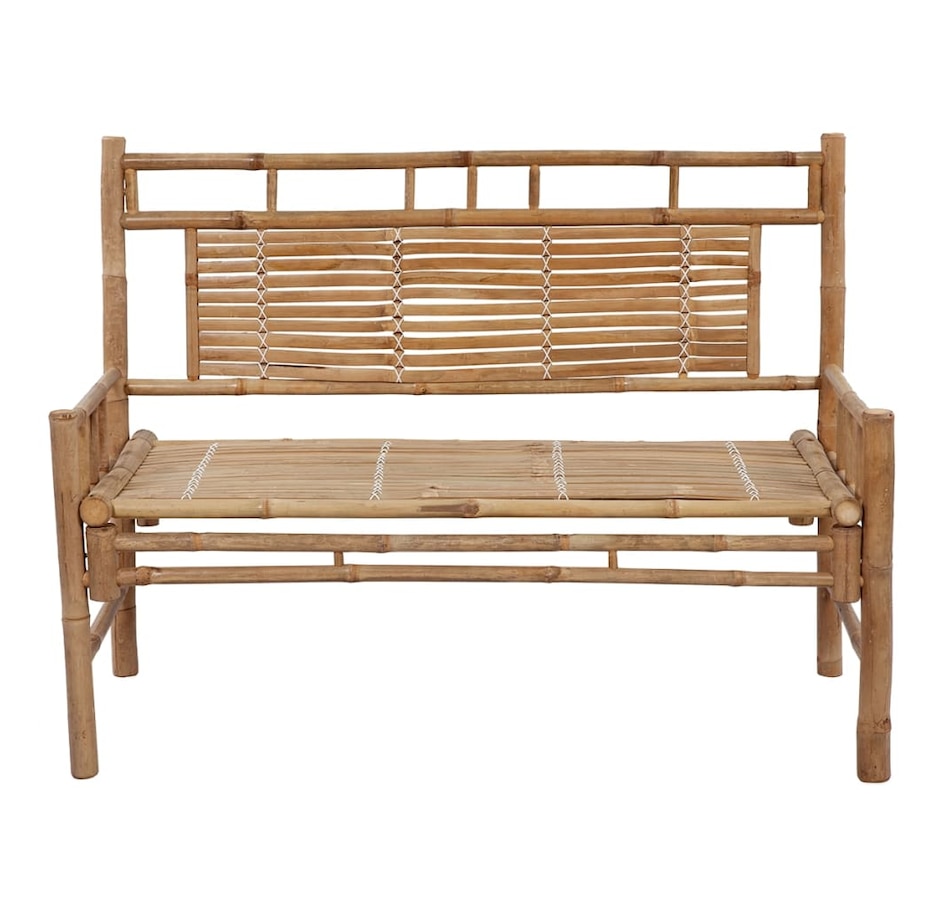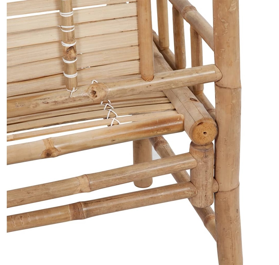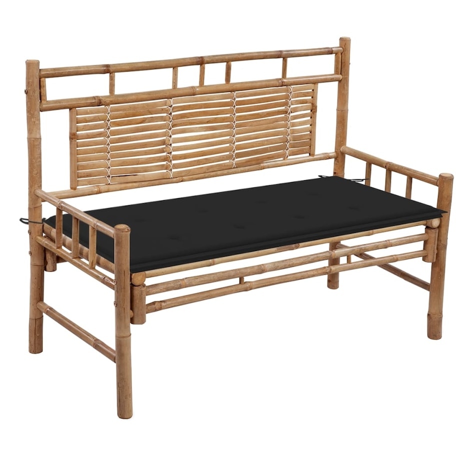 This classic bamboo bench will be a great addition to your garden or other outdoor space. The outdoor bench is designed with a backrest, which is comfortable for you to sit on while reading or resting. Made from weather- and water-resistant bamboo, the garden bench is durable and stable. It is also easy to clean with a damp cloth. Additionally, the included cushion provides additional comfort during your relaxation time. It is made from 100% polyester which has been treated to make it waterproof. Each cushion has two sets of ropes to secure it firmly on the bench.