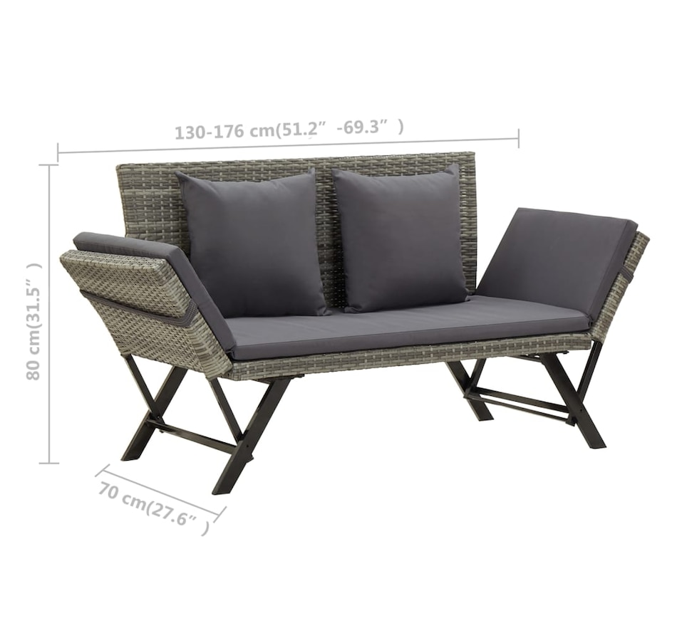 This outdoor sunbed/garden bench combines style and functionality and will become the focal point of your garden or patio. Made from weather-resistant resin wicker, this garden bench is easy to clean, resistant to wear and suitable for daily use. It features a sturdy, powder-coated steel frame, making this bench very stable and durable. It can be transformed into a daybed and vice versa quickly and easily thanks to its adjustable sides. The thickly padded cushion provides optimal comfort and extra support. Additionally, thanks to the zippered design, the cushion cover is removable for easy washing. Delivery includes 1 garden bench, 1 seat cushion and 2 pillows. Note: We recommend covering the garden bench in rainy, snowy, frozen or other harsh weather to extend its lifespan.