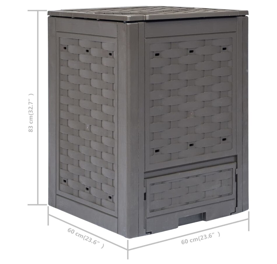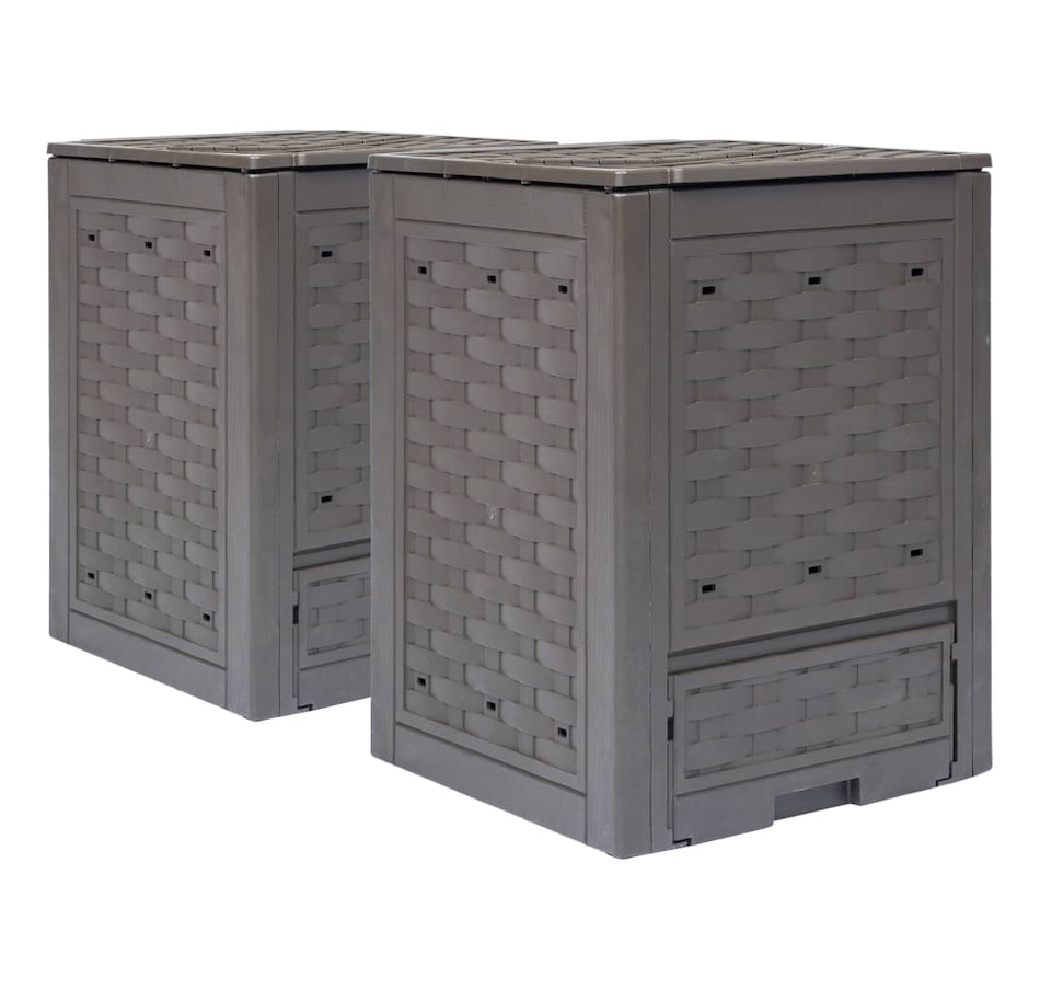 Our rattan-look garden composters will definitely be a perfect option for collecting organic waste, including leaves, weeds and lawn clippings. The compost bins are made of plastic, which makes them UV and weather resistant. The units have a lightweight body as well as a neat appearance. They have slotted lids for optimal irrigation and ventilation. Thanks to the ventilation holes in the side parts, the waste bins allow optimal composting. These square composters will be very useful when recycling and will blend naturally into any garden. Delivery includes 2 garden composters.