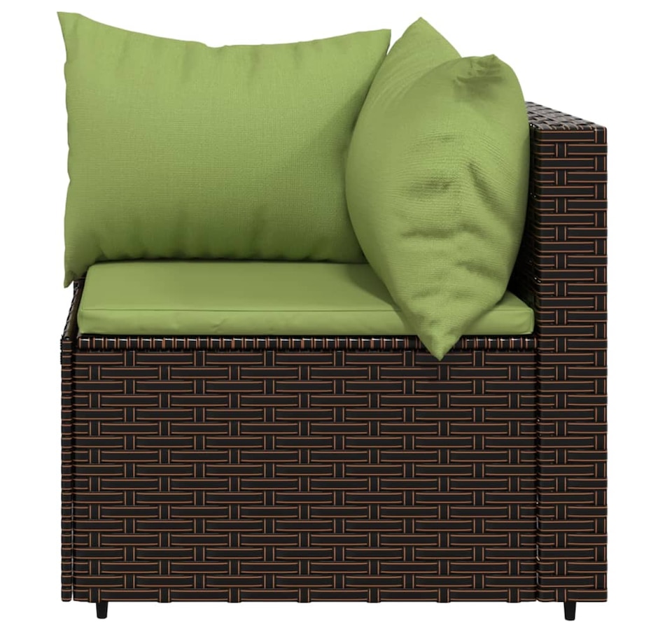 These trendy garden corner sofas, with an elegant and contemporary design, are perfect for dining or relaxing in your garden. WEATHER RESISTANT MATERIAL: Resin wicker, also known as poly rattan, is weather resistant and easy to clean. It stays beautiful outdoors for a long time. It offers excellent quality, convenience and aesthetic appearance.Sturdy Frame: The powder coated steel frame makes the sofa sturdy and stable for daily outdoor use.Modular Design: The outdoor sofa is flexible and easy to move, so you can combine it with other modular segments from the online store to create your own garden furniture configurations!Comfortable seating experience: the backrest adds additional seating comfort to the garden sofa. Additionally, the well-padded cushions provide comfort during your sitting time. Good to know: To make assembly as easy as possible, each product is delivered with instructions. Note: The product is intended for outdoor use only. Do not store it indoors. To keep your outdoor furniture looking great, we recommend protecting it with a waterproof cover.