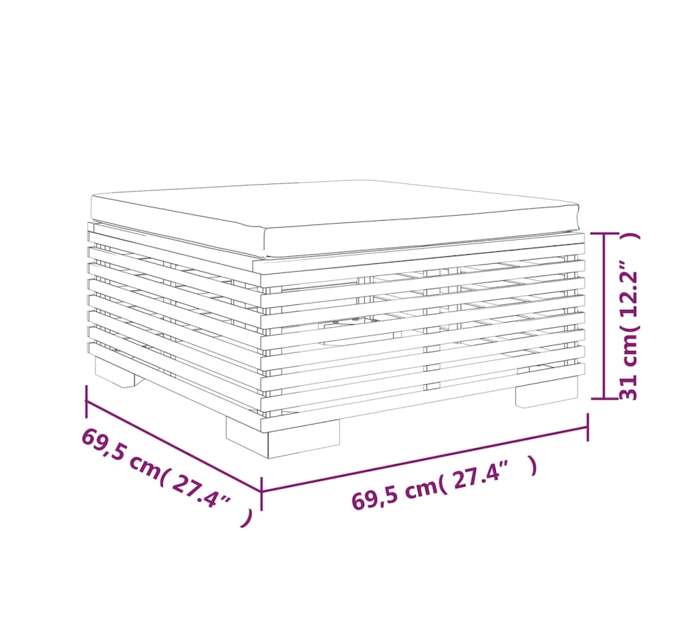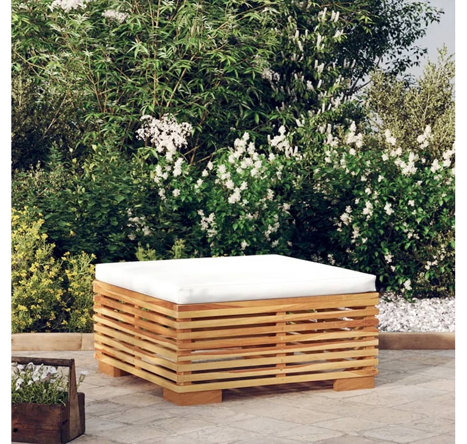 This wooden footstool, which stands out for its slatted design and soft cushions, will be an asset for your garden, terrace or patio to chat with your family and friends or simply to enjoy the good weather. Solid Teak Wood: Solid teak wood is a beautiful natural material. It has been seasoned, kiln dried, then finely sanded to give it a very smooth appearance. Teak wood is known for its exceptional strength and weather resistance.Soft Cushion: The well-padded seat cushion of this sectional footstool provides the utmost comfort.Practical Design: The ottoman is easy to move, which allows you to easily create different layouts to suit your needs. You can find other sectional sofas with the same design and style in our store to arrange your own living room models. Note: Each product comes with an assembly manual in the box for easy assembly. To extend the life of your outdoor furniture, we recommend protecting it with a waterproof cover.