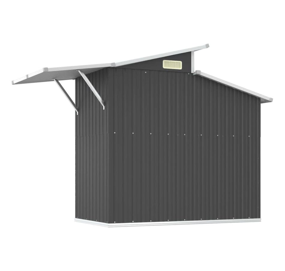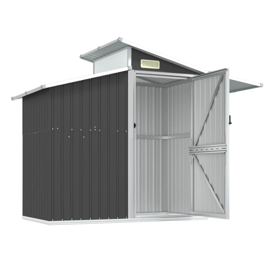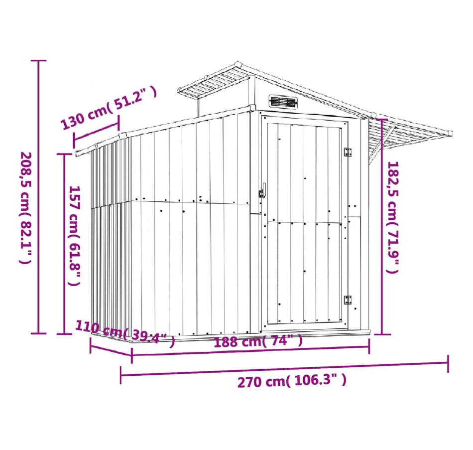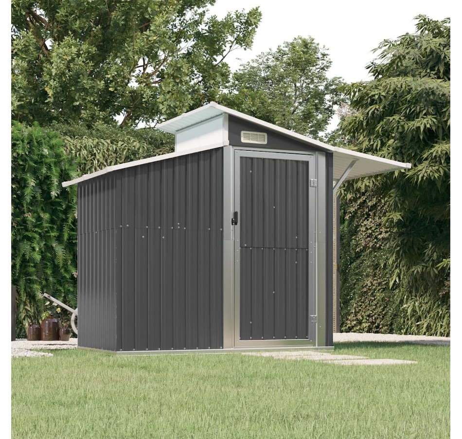This essential garden shed is a great outdoor storage solution for items such as your outdoor tools, pool essentials, gardening tools and similar equipment. Durable Material: The garden tool shed is made of galvanized steel, which prevents rust and lasts for a long time. Spacious Storage Space: The tool storage shed is surprisingly spacious, providing storage solutions for your outdoor toys, pool equipment and accessories, as well as gardening equipment including hoses, spades, pots, lawn mowers, etc.Convenient Entry: Outdoor tool storage comes with a door for easy entry. Additionally, the convenient handle design provides added convenience.Convenient Ventilation Port: Convenient vent port allows air to circulate inside the outdoor storage shed, ensuring that it does not produce unpleasant odors. In addition, the transparent panel of the side roof lets natural light into the shelter.