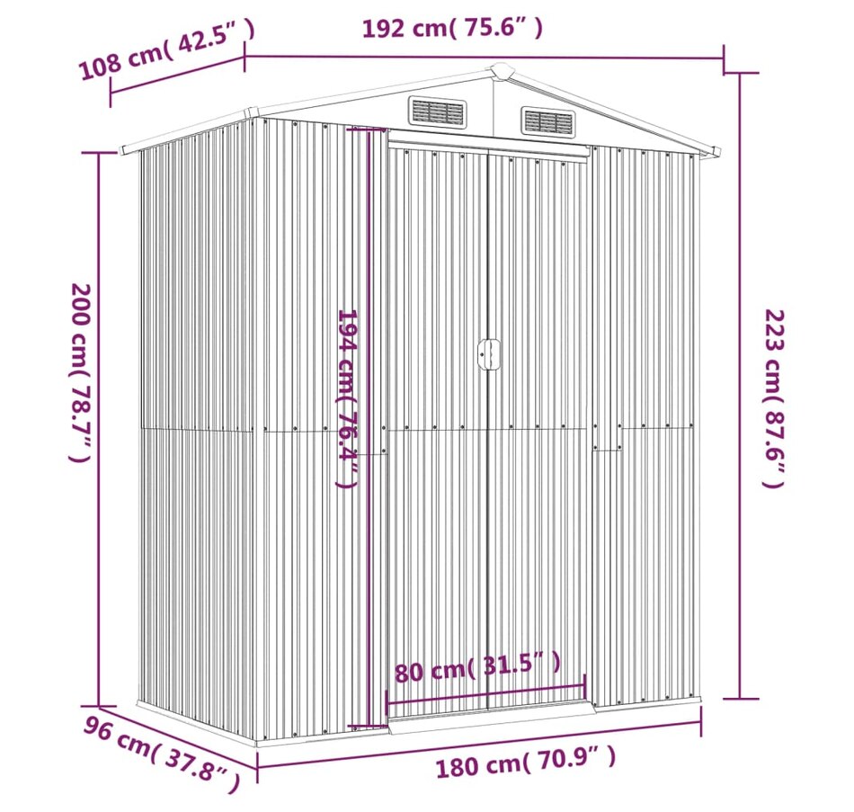 This essential garden shed is a great outdoor storage solution for items such as your outdoor tools, pool essentials, gardening tools and similar equipment. Durable Material: The garden tool shed is made of galvanized steel, which prevents rust and lasts for a long time. Spacious Storage Space: The tool storage shed is surprisingly spacious, providing storage solutions for your outdoor toys, pool equipment and accessories, as well as gardening equipment including hoses, spades, pots, lawn mowers, etc.Convenient door and handle: Outdoor tool storage is comes with a sliding door for easy entry. Additionally, the convenient handle design provides added convenience.Convenient Ventilation Port: Convenient vent port allows air to circulate inside the outdoor storage shed, ensuring that it does not produce unpleasant odors. Note: Each product comes with an assembly manual in the box for easy assembly.