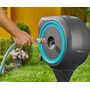 The box also has a practical hose guide that keeps the hose on track so that no blockages or knots occur. The innovative RollControl technology ensures safe, controlled and effortless retraction with zero tangles. The high-quality material has both UV and frost protection, and offers a long service life and usability without maintenance. The box is particularly compact and stylishly designed so that it can be easily integrated into any garden. Plus, it's adjusted to the height of Gardena mowing robots so that the lawn around the hose box is always maintained and mowed. Included with the garden hose box is a flexible connecting hose, all necessary assembly parts and original Gardena system elements as well as a sprayer with two different spray patterns.