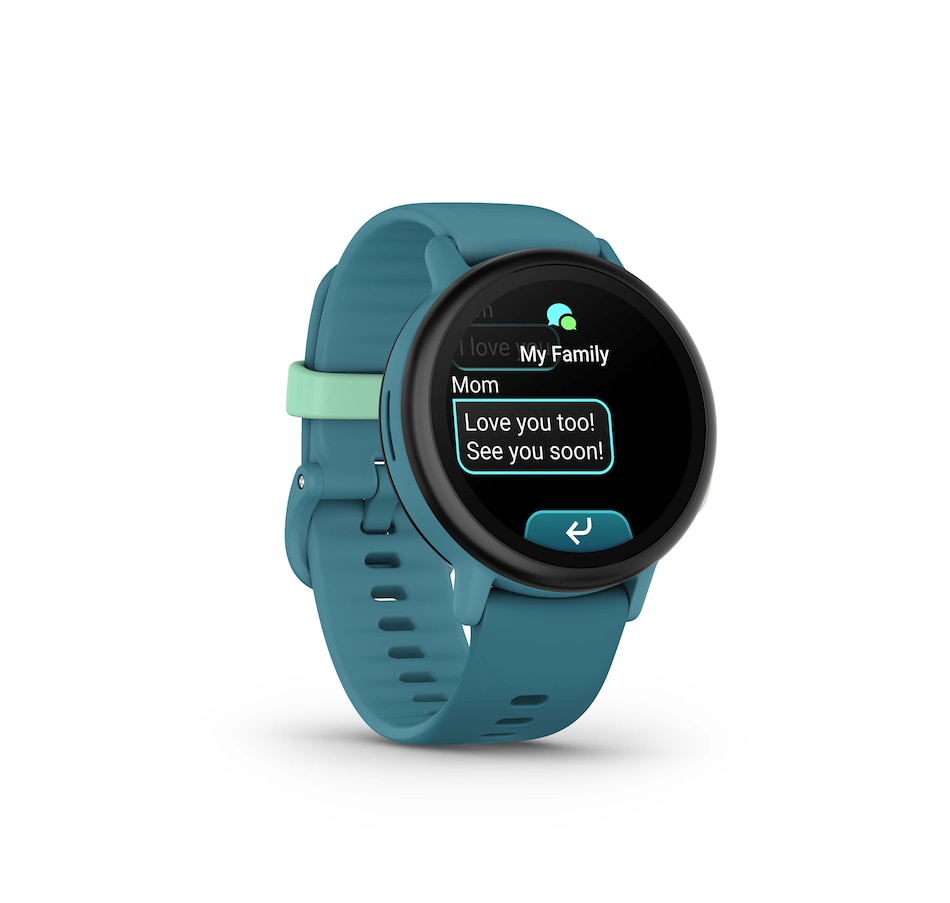 • Easily send text messages between the Bounce 2 smartwatch and the Garmin Jr. smartphone app (an active subscription and LTE connectivity are required)