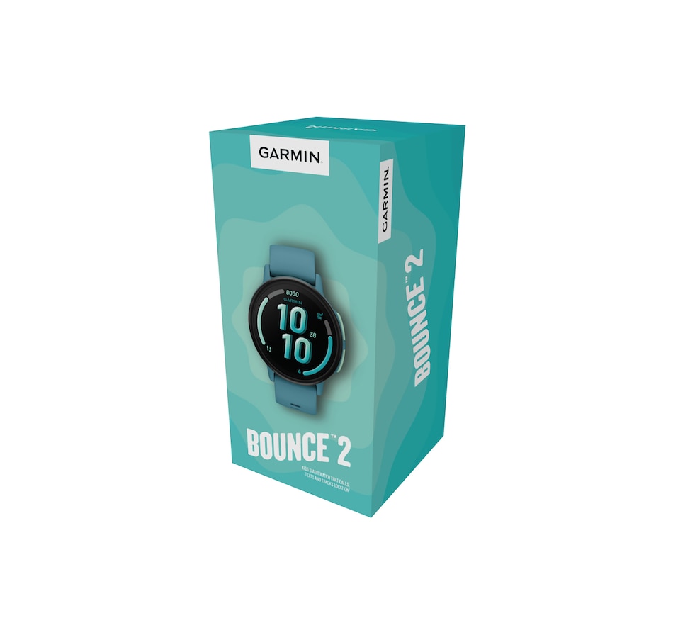 Bounce 2 is the kids' smartwatch with two-way calling, text messaging and real-time location tracking that parents have been waiting for. Kids can track their activity, listen to music (subscription required) and even manage chores and rewards, all on a bright, colourful AMOLED display smartwatch that's also swim-friendly. Parents will love the Garmin Jr. smartphone app that allows them to keep track of, and chat with, their child. Up to two days of battery life will keep Bounce 2 off the charger and on their wrist longer (note: connected feature use significantly impacts battery life), and preloaded sports apps and step tracking can help keep kids active!