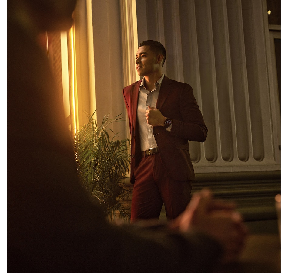 • Composition: stainless steel (bezel), fibre-reinforced polymer with titanium rear cover (case), silicone (strap)