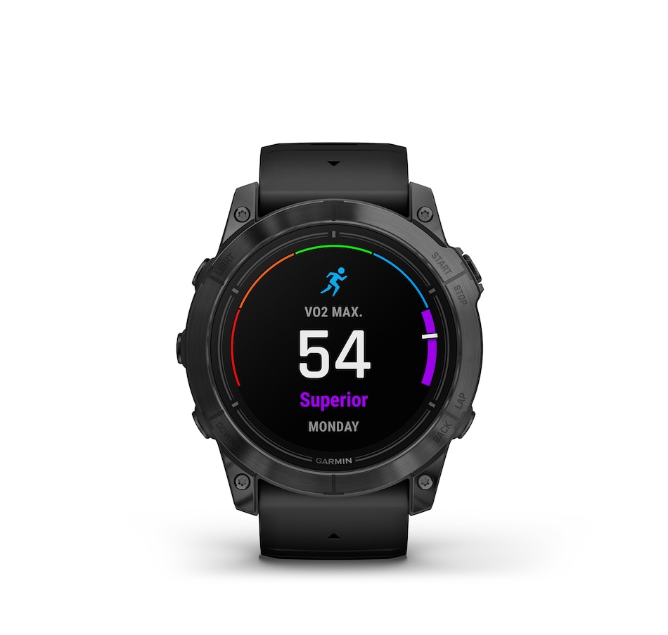 All day, every day, the Epix Pro smartwatch from Garmin helps you conquer every hour. Designed for larger wrists, this ultimate high-performance smartwatch features a stunning AMOLED display, plus you can go longer between charges with up to weeks of battery life in smartwatch mode. Rise to any challenge with advanced training features such as Hill Score, which measures your climbing performance over time, and real-time stamina updates that gauge your stamina potential. The bright LED flashlight provides convenient illumination when you need it, and with 24/7 health monitoring features such as advanced sleep tracking, HRV status and more, you can prioritize your mental and physical wellness (note: data presented is intended to be a close estimation of metrics tracked).