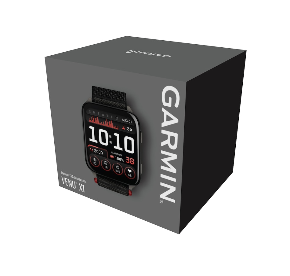The Venu X1 GPS smartwatch features a large two-inch easy-to-read AMOLED display and a thin watch case measuring only eight millimetres. It also has a sapphire lens and bright LED flashlight. You can wear it all day, every day, thanks to the sleek and lightweight design, up to eight days of battery life in smartwatch mode and ComfortFit nylon band. Optimize your health with HRV status, advanced sleep monitoring and Body Battery energy monitoring (data presented is intended to be a close estimation of metrics tracked). Track your passions with more than 100 preloaded sports apps, including running, golf and strength training. Train for an event, achieve a milestone, or improve your fitness with Garmin Coach training plans for running, cycling or strength. Train smarter and maximize your performance with the training readiness score, training status and endurance score, and be prepared for whatever the day brings (data presented is intended to be a close estimation of metrics tracked).
