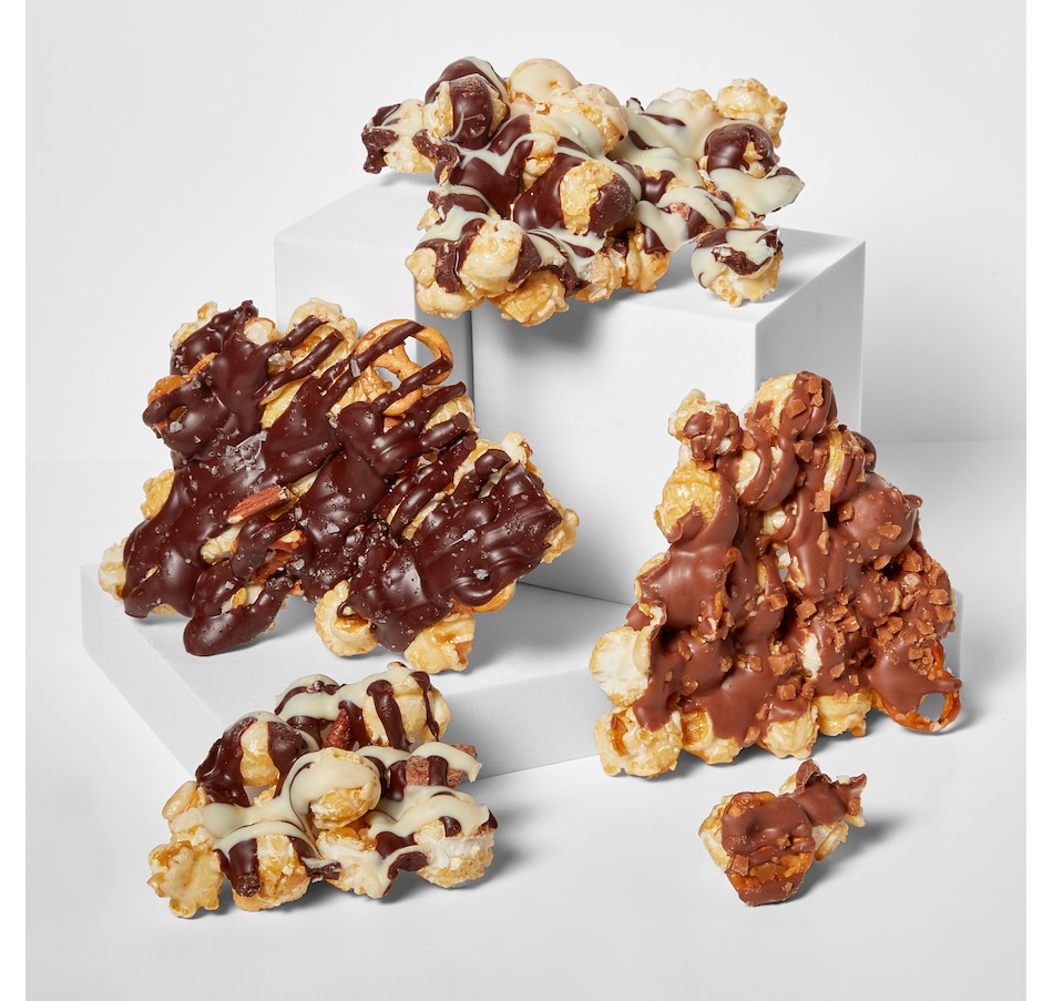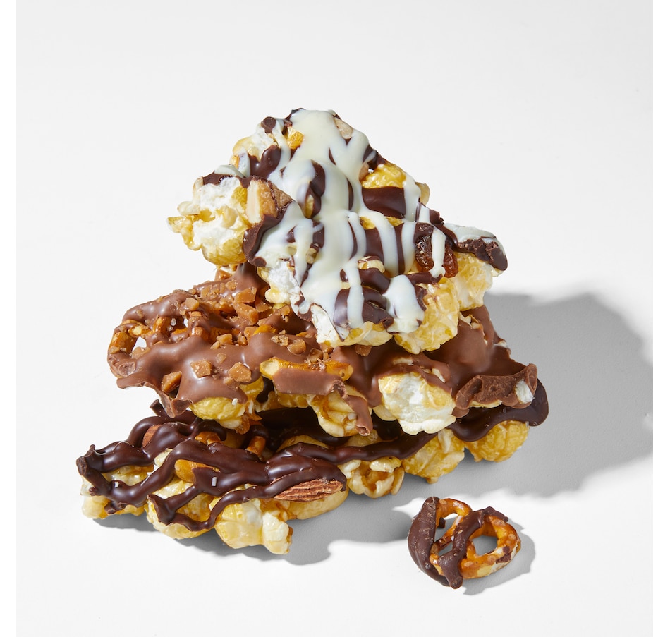 • Classic Caramel Popcorn (caramel popcorn with mini pretzels and white and dark Belgian chocolate)