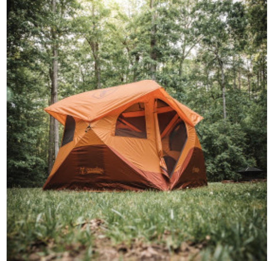 The T4 Overland Edition has all the same great features of Gazelle's most popular T4 Hub tent, with additional upgrades to take this tent to the next level. The Overland edition includes an added durable footprint for floor protection, upgraded all-terrain stakes, and a water-resistant duffle bag. This tent spaciously provides 61 square feet of floor space and stands 78” tall, sleeping four people with spare space for your gear. The T4 comes fully-assembled and sets up and takes down in under 90 seconds. Let the T4 Hub Tent Overland Edition take your base camp to the next level.!