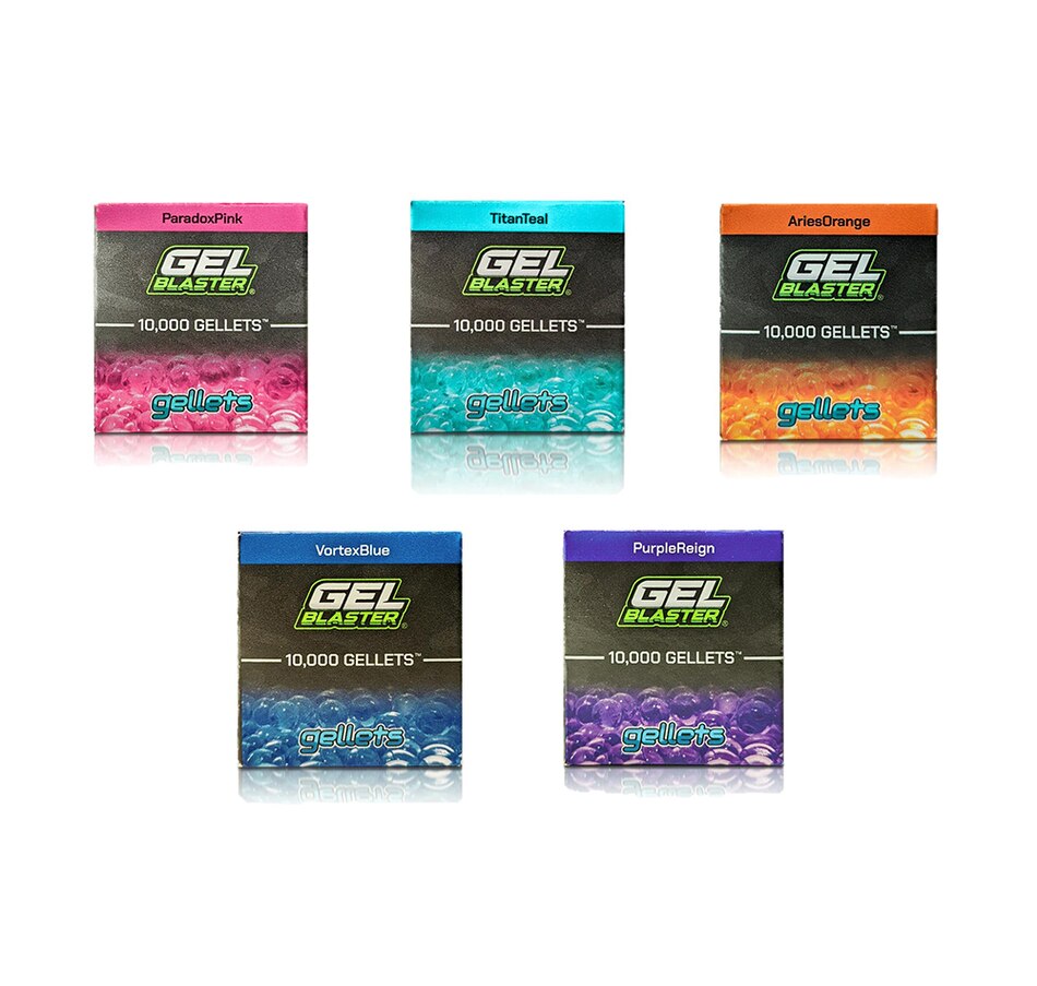 Gellets are small, colourful gel balls made from Super Absorbent Polymer (SAP), an all natural, non-toxic, non-staining, non-irritating, starch-based material. Water hydrated gellets burst on contact and immediately begin to evaporate. These are designed exclusively for Gel Blasters.