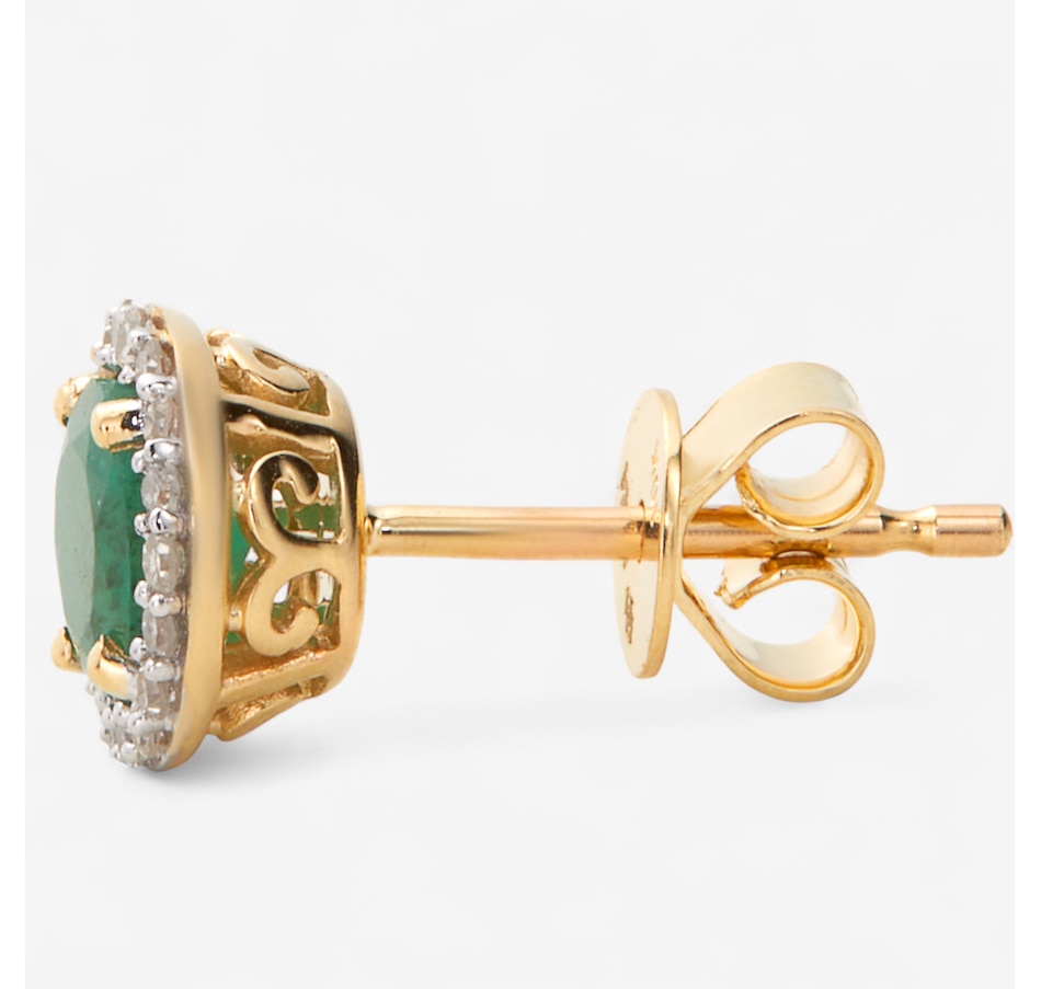 10K Gold 1.00ctw Round Emerald & Diamond Halo Stud Earrings
