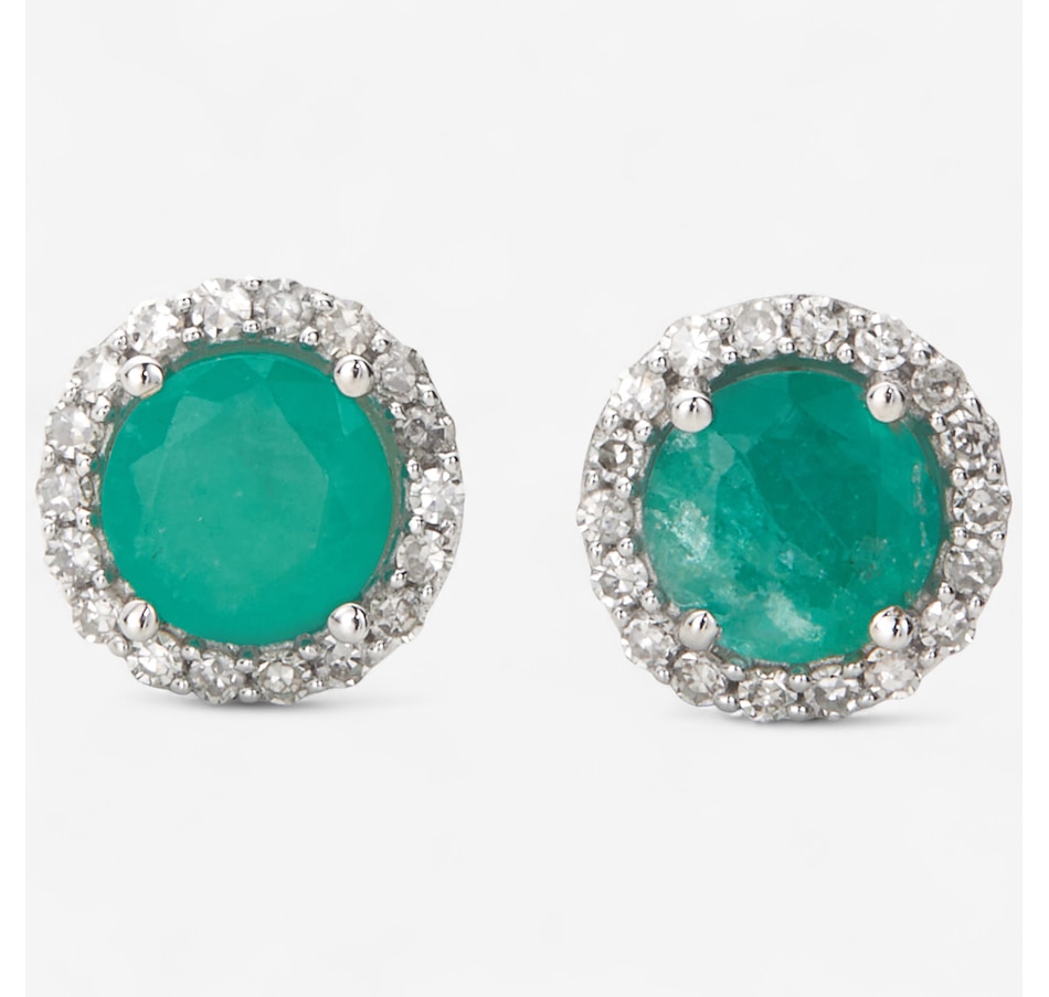 • (2) 5mm round, prong set & faceted emeralds (0.85 av.ctw)