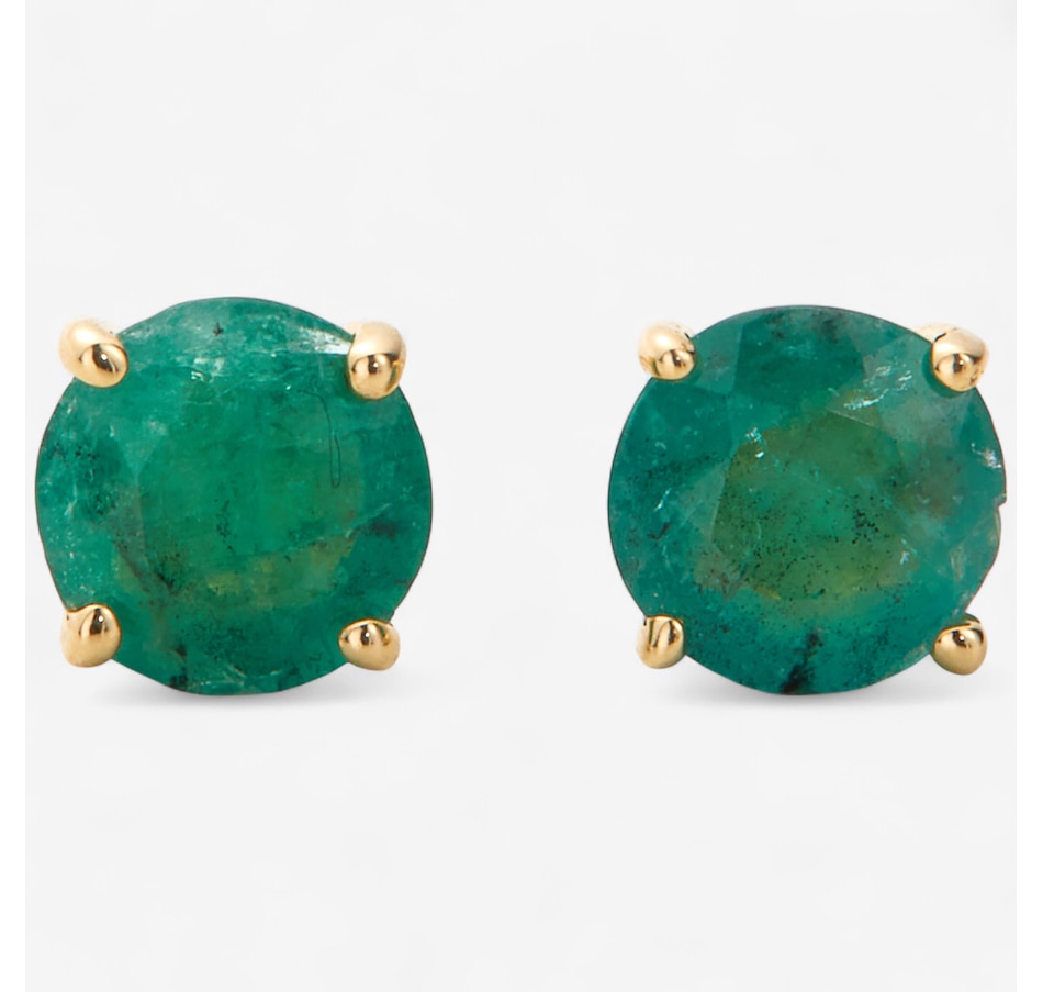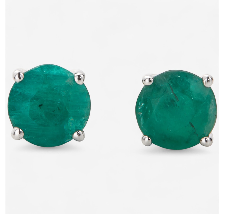 • (2) 6mm round, prong set & faceted emeralds (1.50 av.ctw)