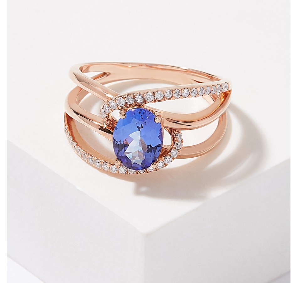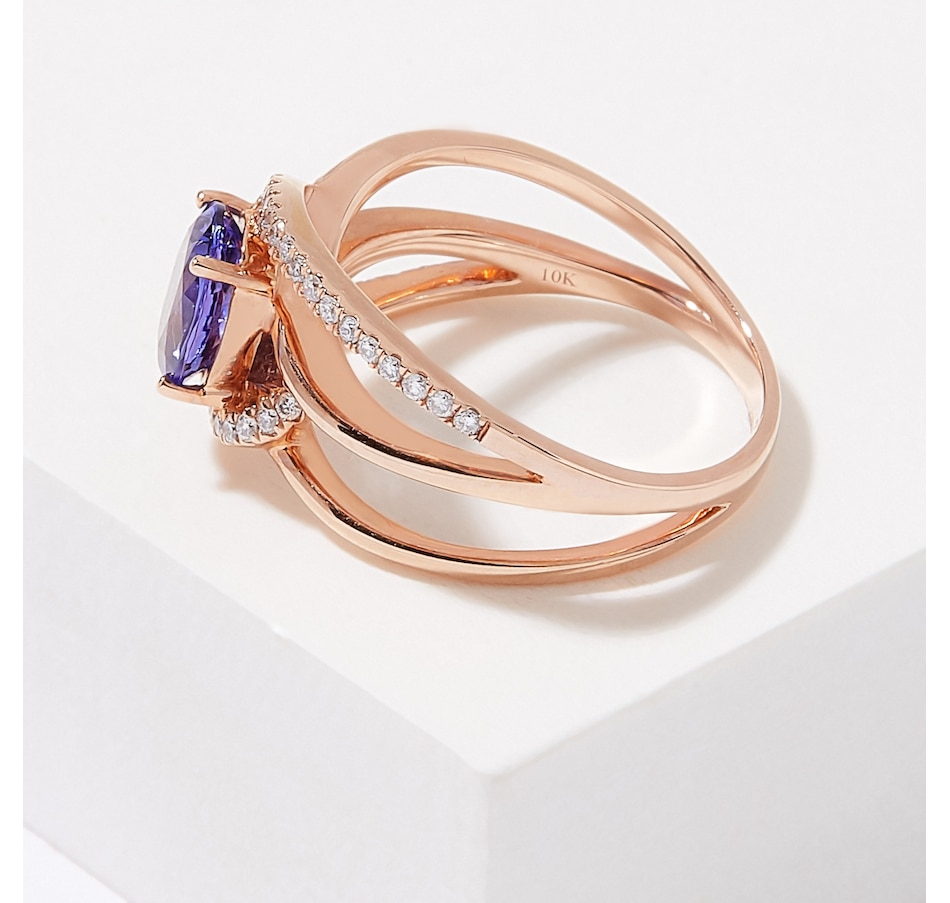 10K Rose Gold Oval Tanzanite and Diamond Ring