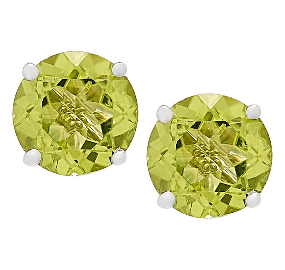• (2) 6 mm round shape, prong set & faceted choice of Gemstone; amthyst (1.50 av.ctw), blue topaz (1.75 av.ctw), citrine (1.50 av.ctw), garnet (1.75 av.ctw), peridot (1.50 av.ctw)