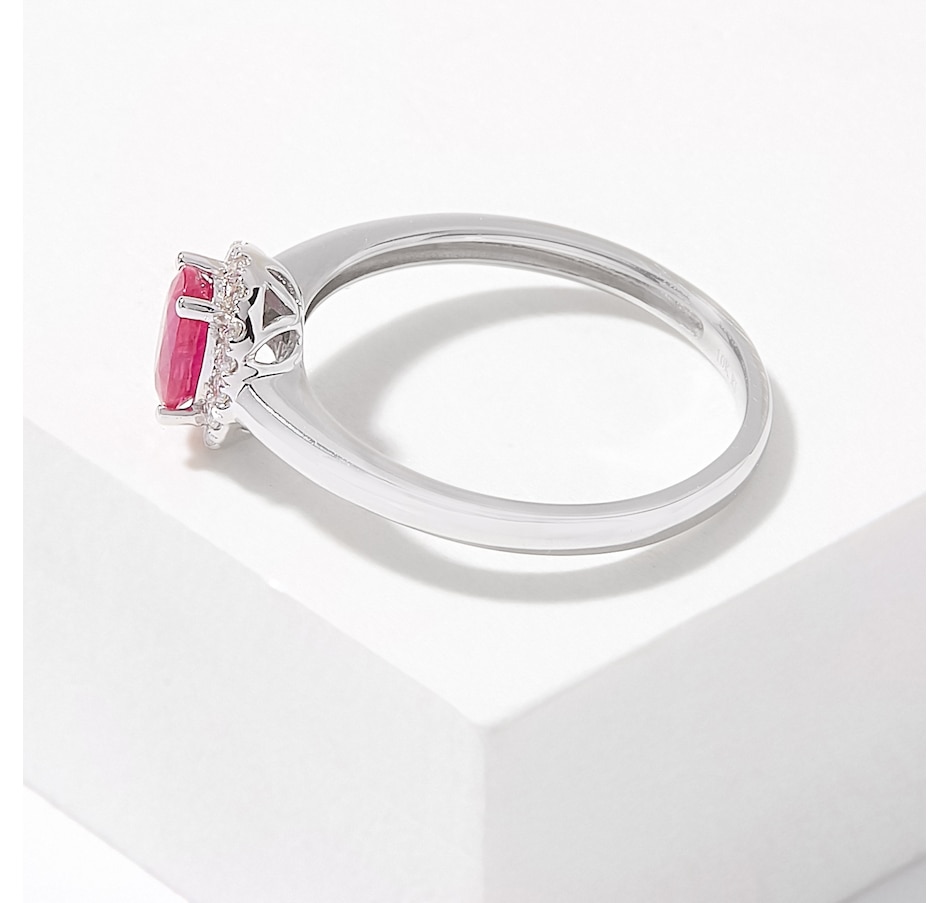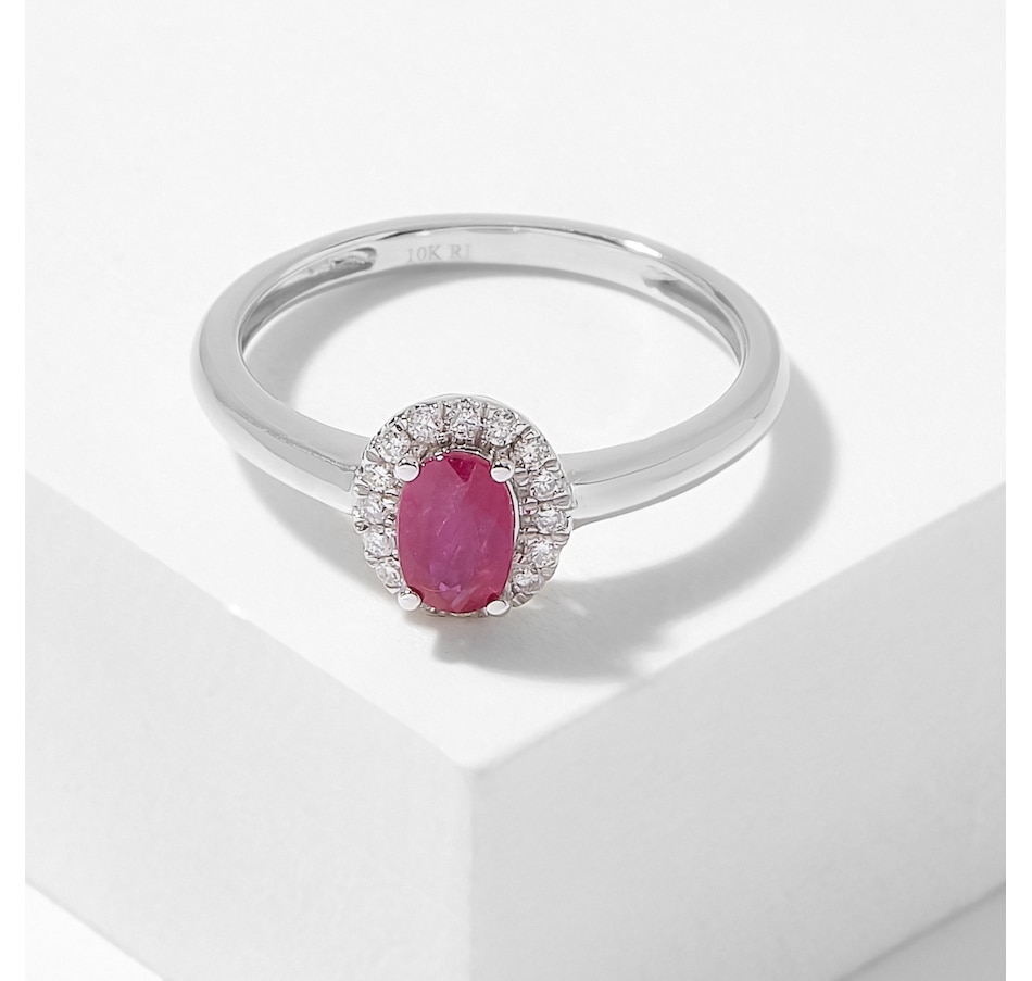 Gem Creations 10K White Gold Oval Ruby and Diamond Halo Ring