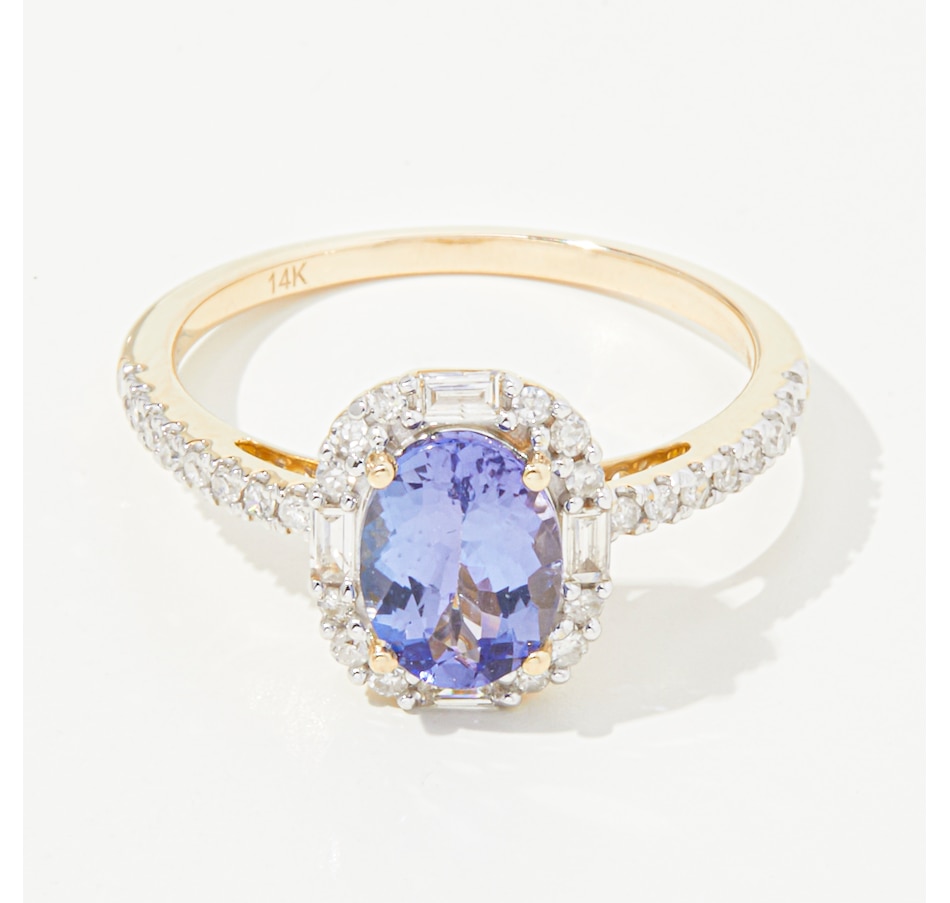 Gem Creations 14K Gold Tanzanite and White Diamond Ring.