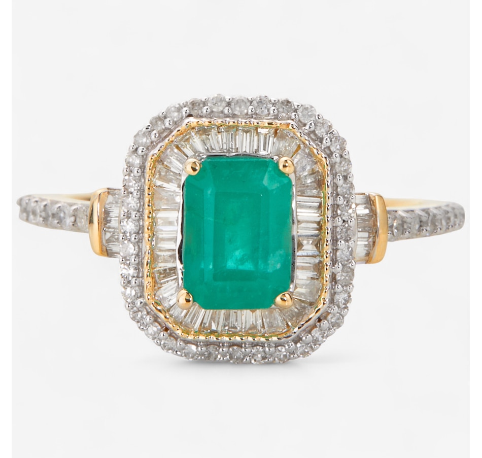 14K Gold 1.03ctw Emerald & Diamond Ring