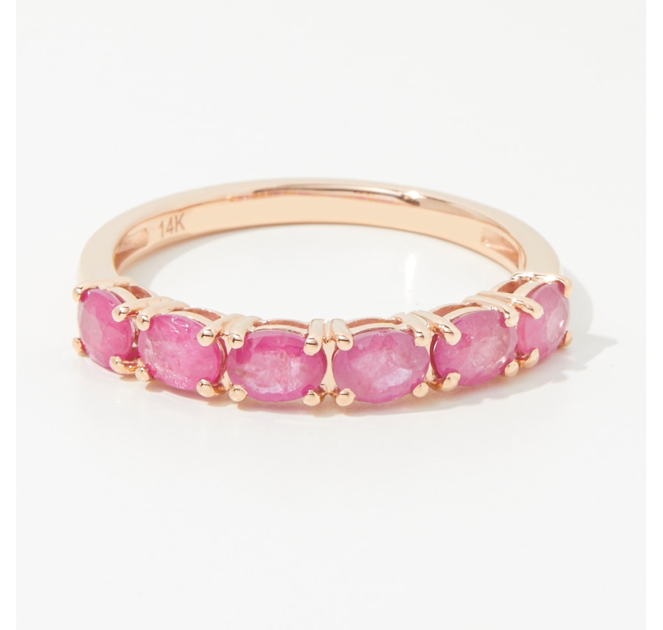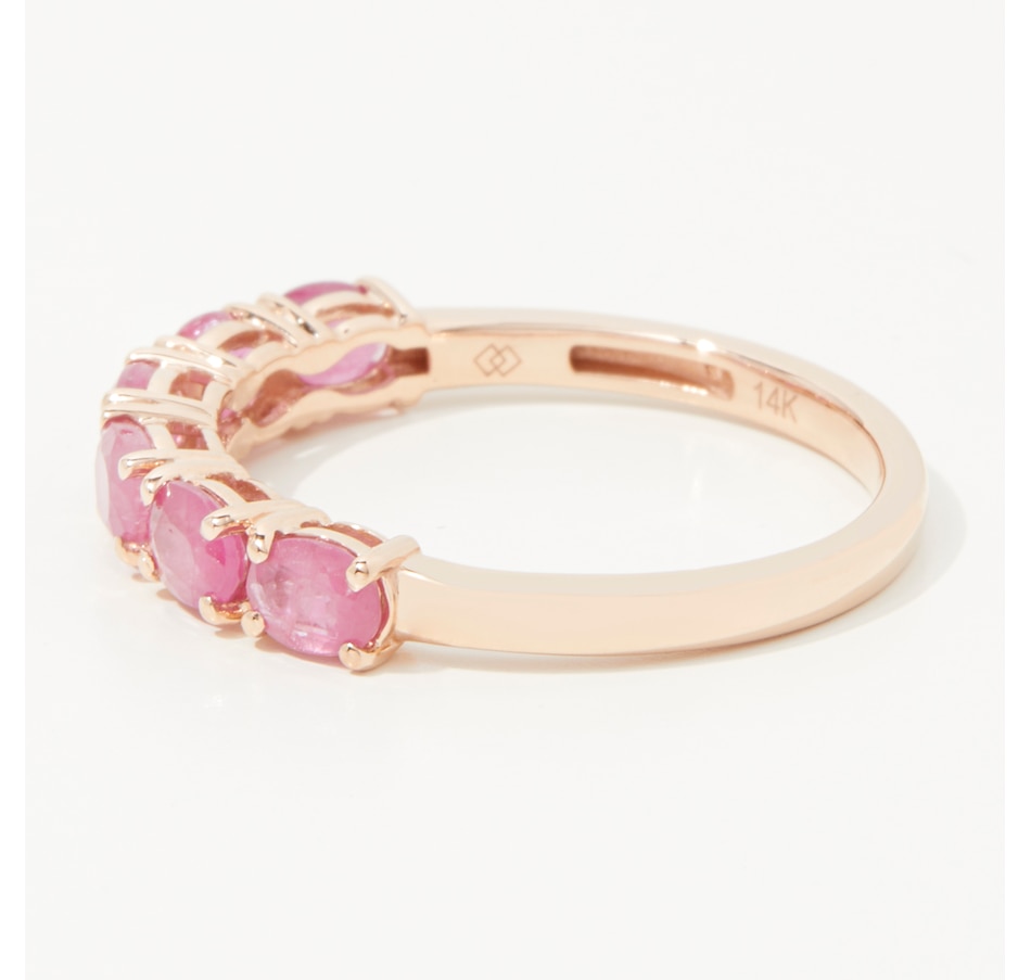 • Average gram weight: 2.17 (rose gold/ruby), 2.18 (white gold/blue sapphire), or 1.91 (yellow gold/emerald), based on a size 7