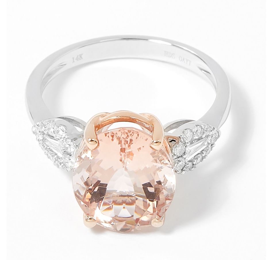 14K Two Tone Gold Oval Morganite & Diamond Ring