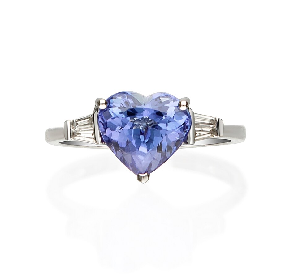 • (1) 8.5 mm heart-shaped, prong-set AA tanzanite (2.44 ctw)