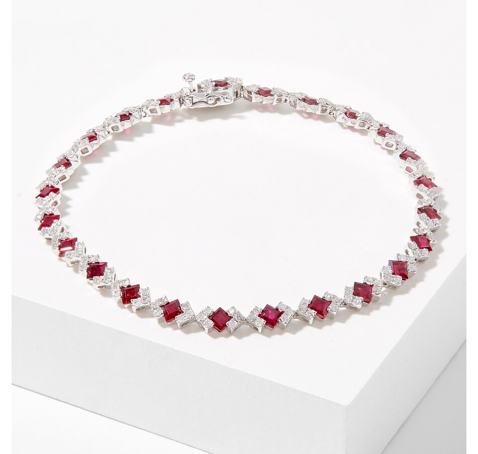 • (24) 3mm square, prong set & faceted ruby (4.725 av.ctw)