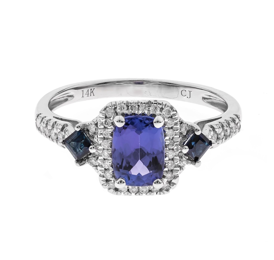 • (1) 5mm x 7mm cushion cut, prong set and faceted tanzanite (1.00 av. ctw)
