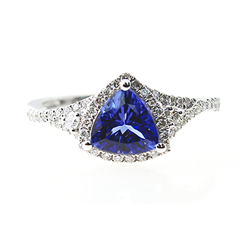 • (1) 7mm trillion cut, prong set and faceted tanzanite (1.20 av. ctw)