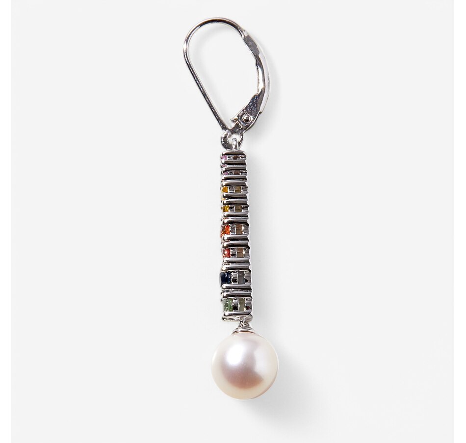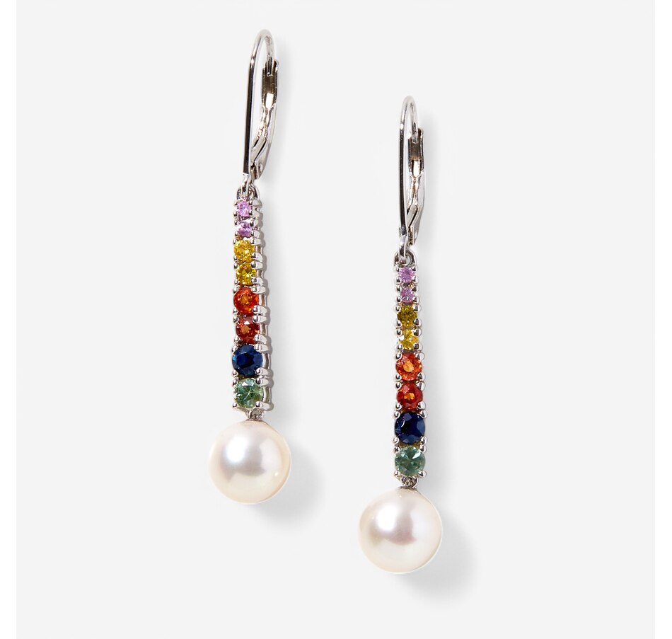 Gem Refections Sterling Silver Multi Sapphire & White Pearl Drop Earrings