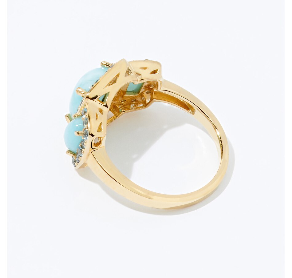 • (2) 6x4mm cushion cabachon, prong set larimar