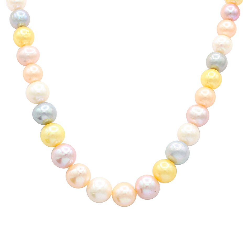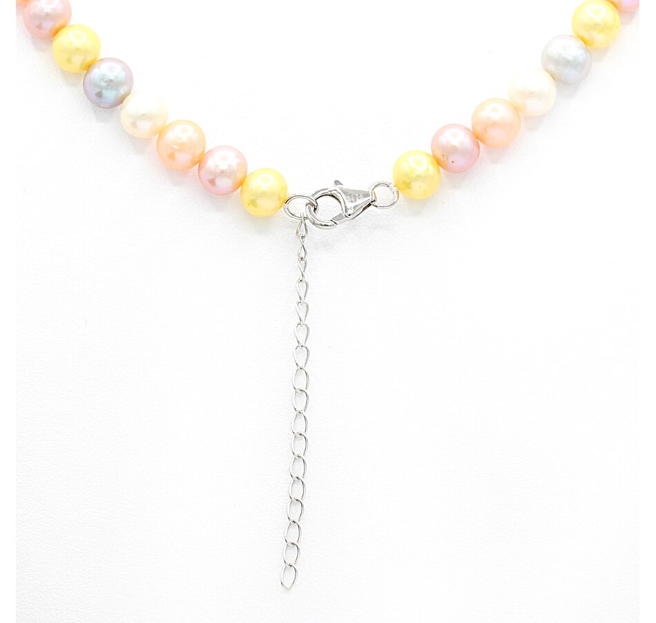 Palladium Silver 7-11mm Graduated Multi Pastel Pearl Necklace
