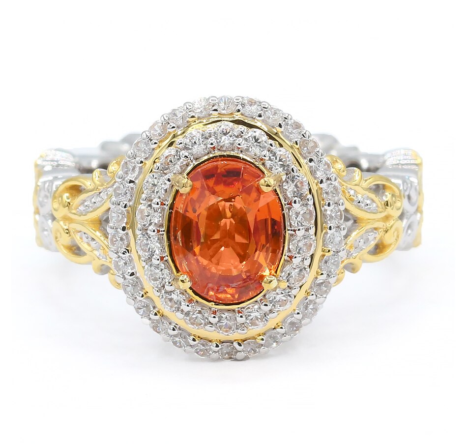 Palladium Silver Blood Orange Sapphire & White Zircon Halo Ring