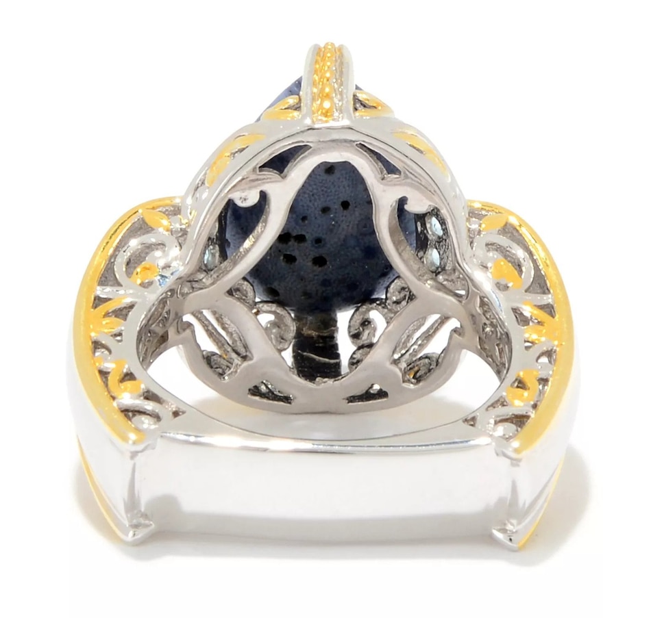• (1) 14x10mm pear cabacho, prong set blue coral: 13.10 av. ctw
