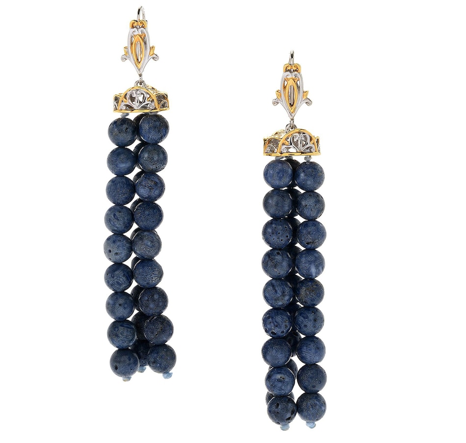 • (54) 6mm round blue coral beads (75.64 av. ctw)