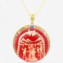 Palladium Silver Carved Skating At Lake Louise Red Amber Pendant With Chain