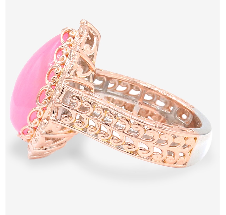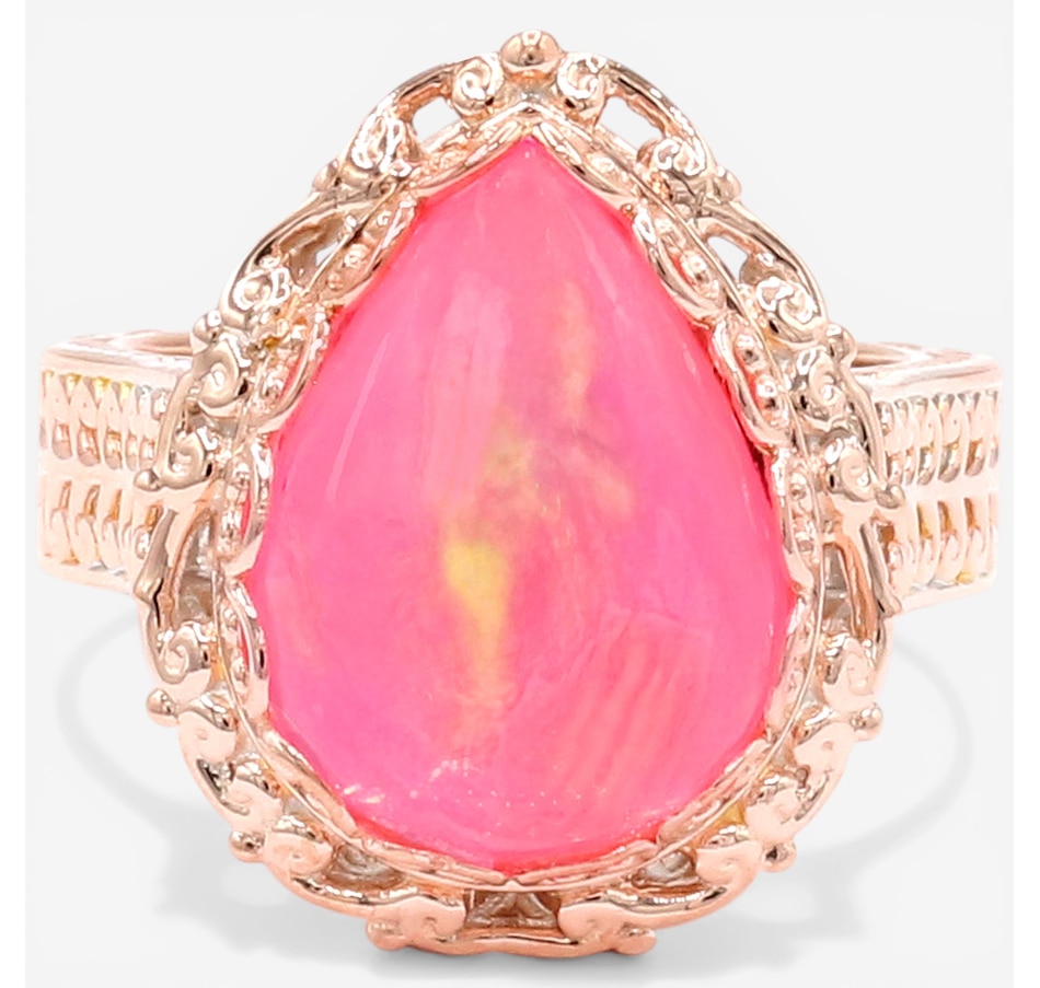 • (1) 16x12mm pear cabachon, prong set dyed pink Ethipian opal (6.80 av. ctw)