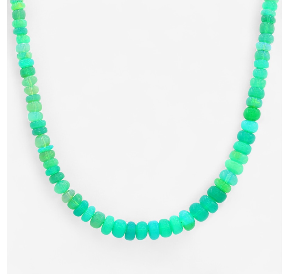 • (170) 4–8mm strung Ethiopian opal beads in choice of paraiba, green, or pink (79.25 av.ctw)