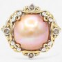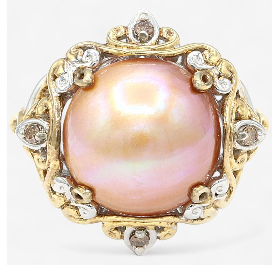 • (1) 14–15mm round cabochon, prong set golden mabe pearl (7.23 ctw)