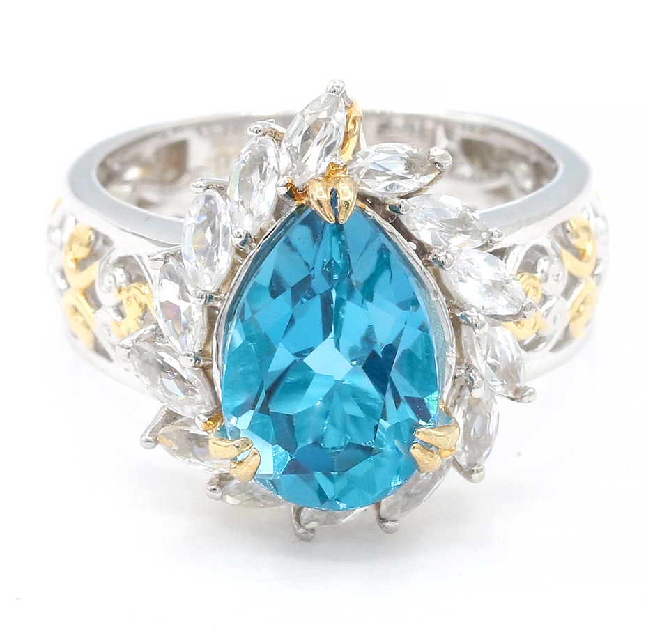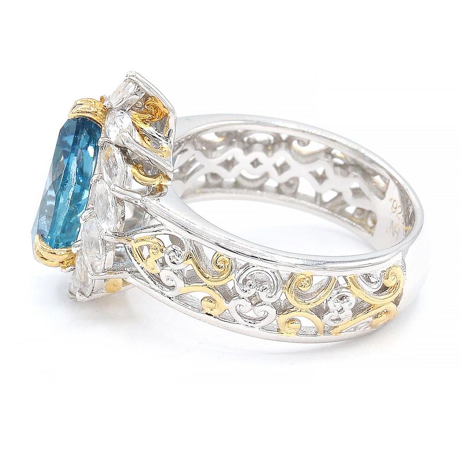 Bright and sophisticated, you're going to love this palladium silver London blue topaz and white zircon ring from Gems En Vogue.