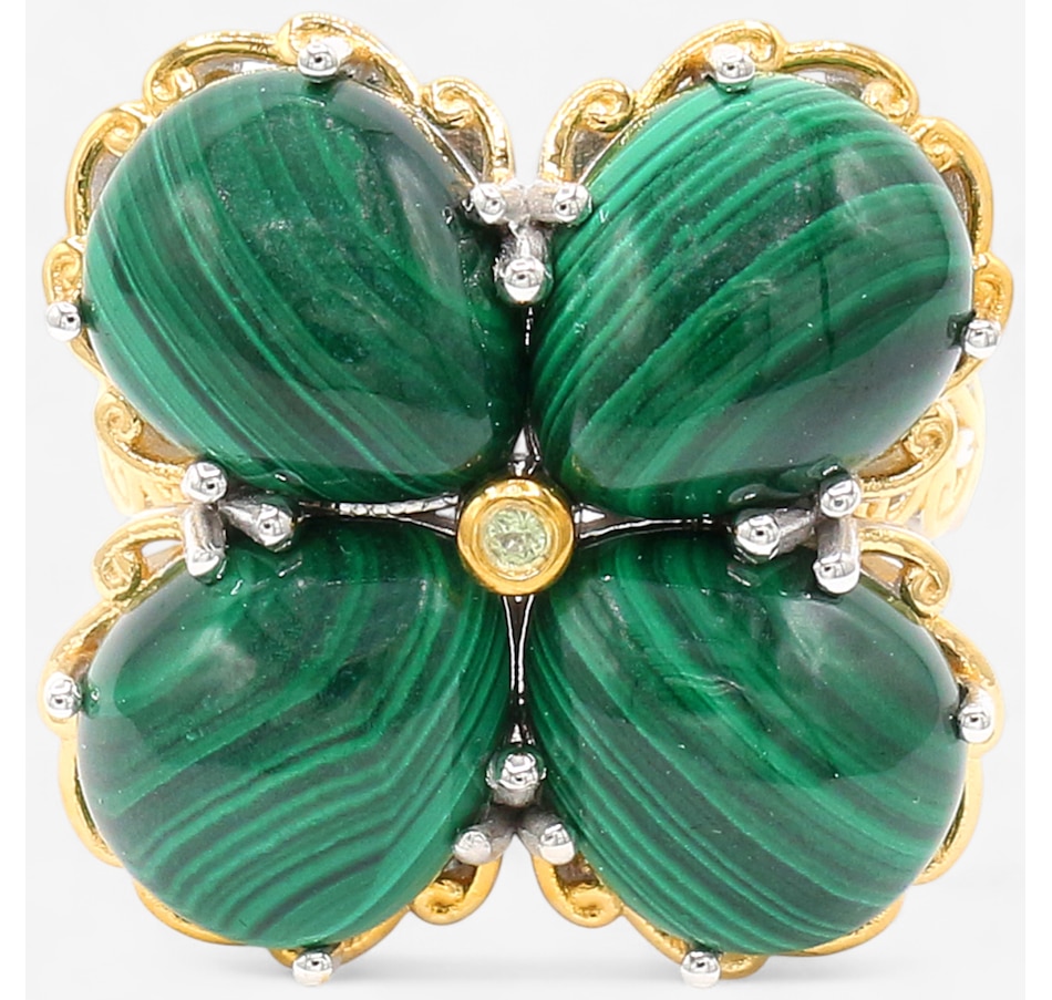 Add a bold pop of green to your collection with this sophisticated clover-style ring from Gems en Vogue.