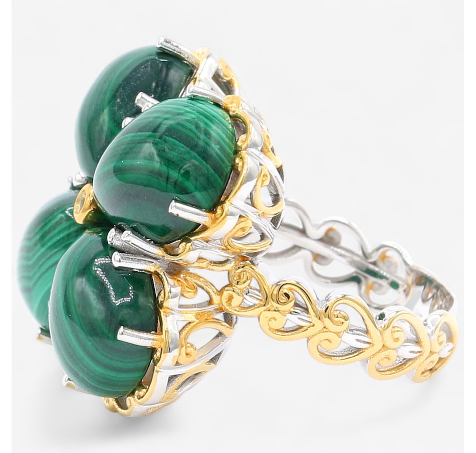 • (4) 12x10mm pear cabochon, prong set Malachite (26.65 av. ctw)