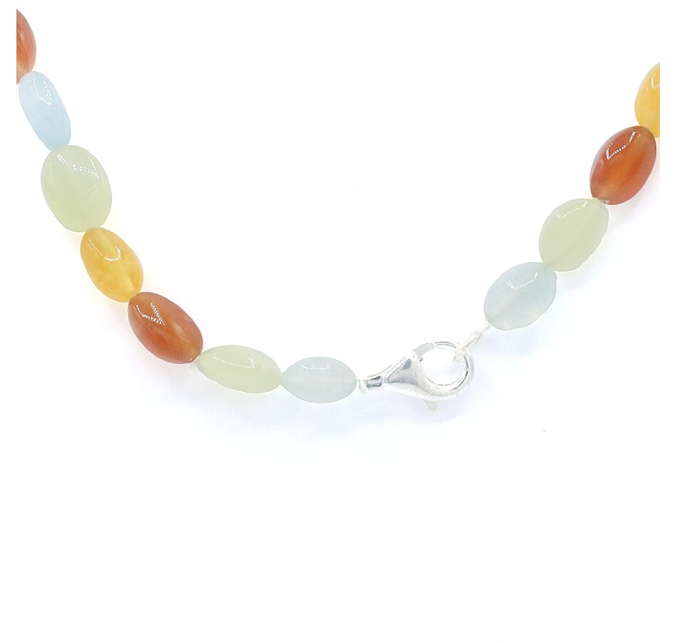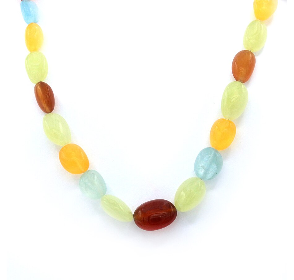Palladium Silver Multi Coloured Aragonite Bead Necklace