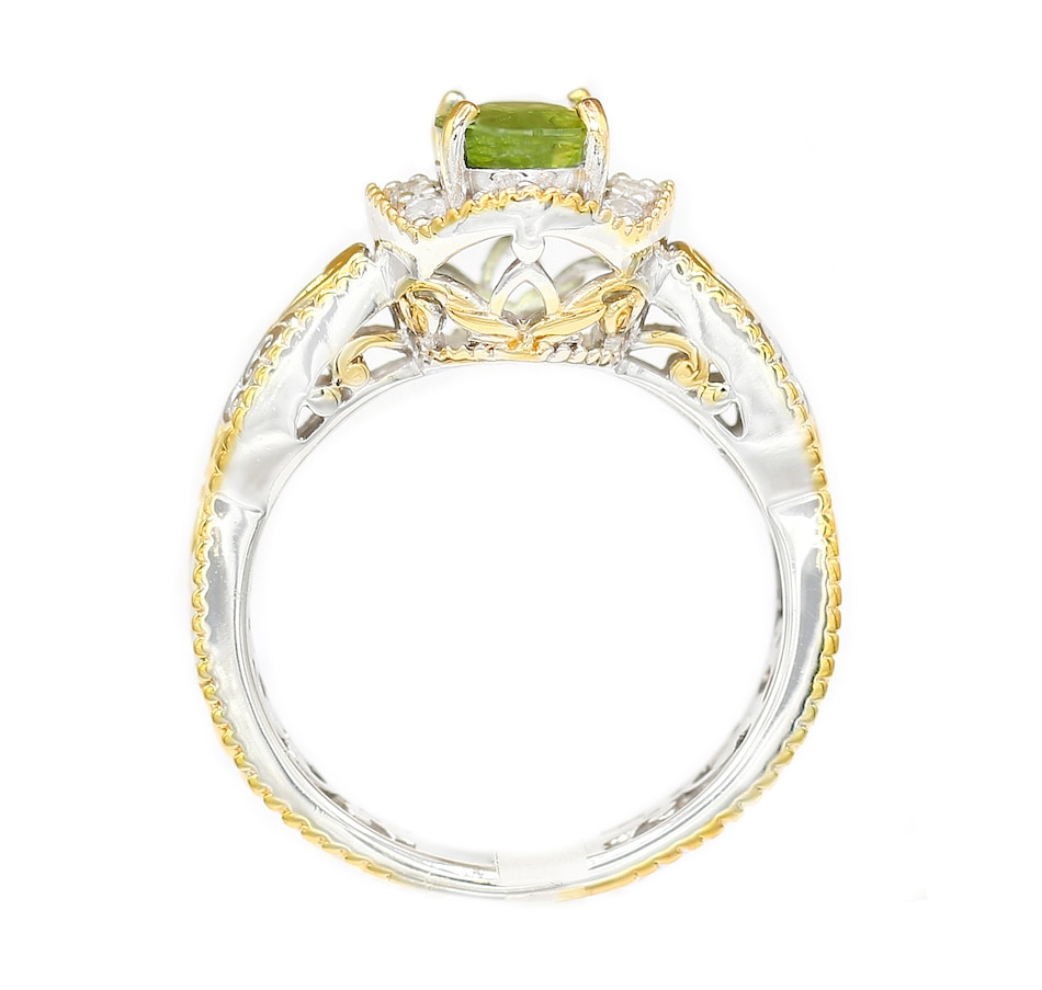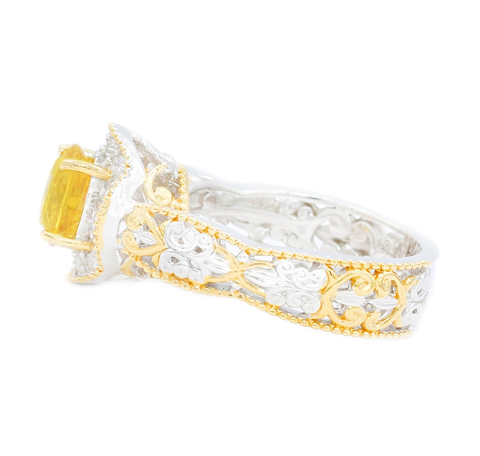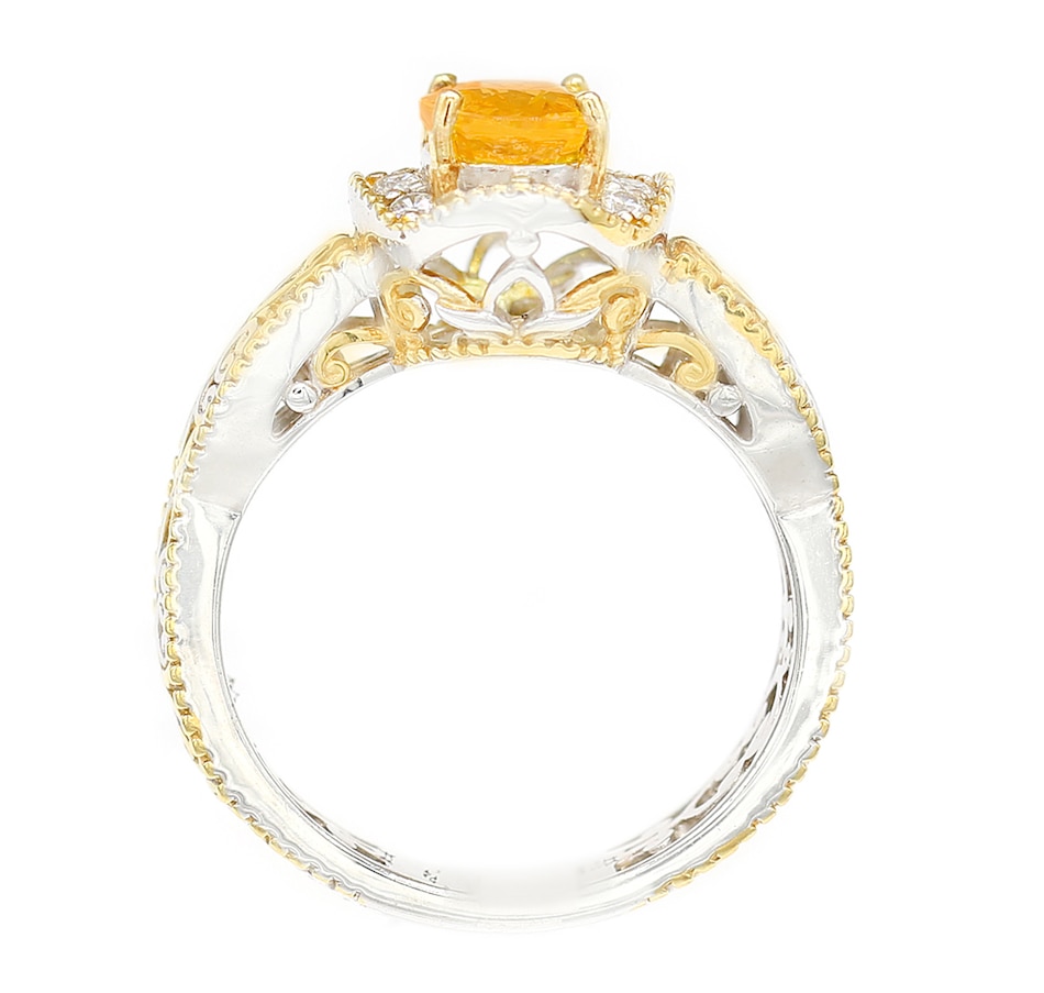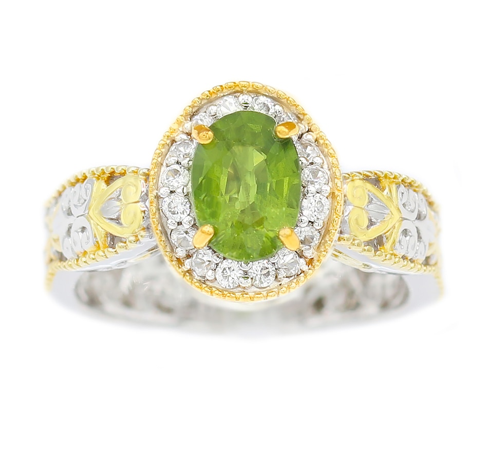 Palladium Silver Oval Sapphire & White Zircon Ring