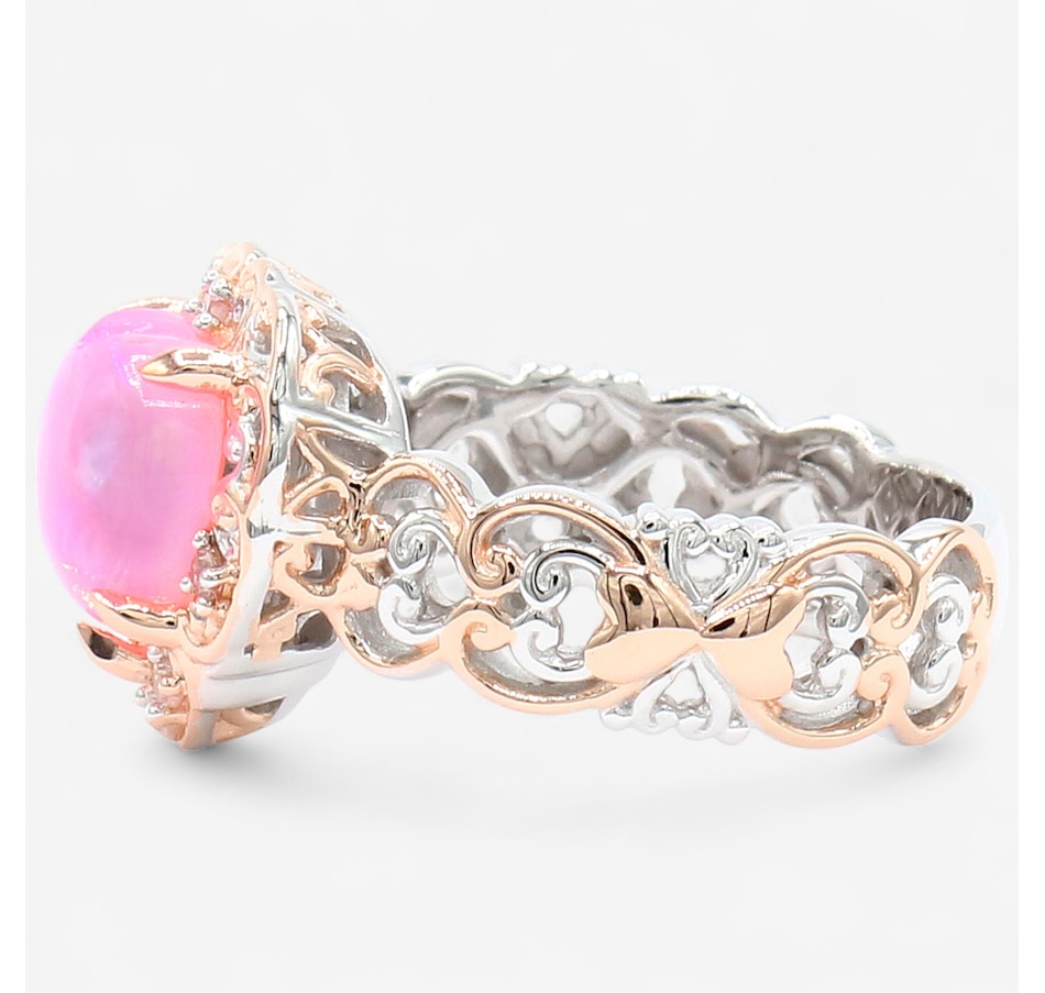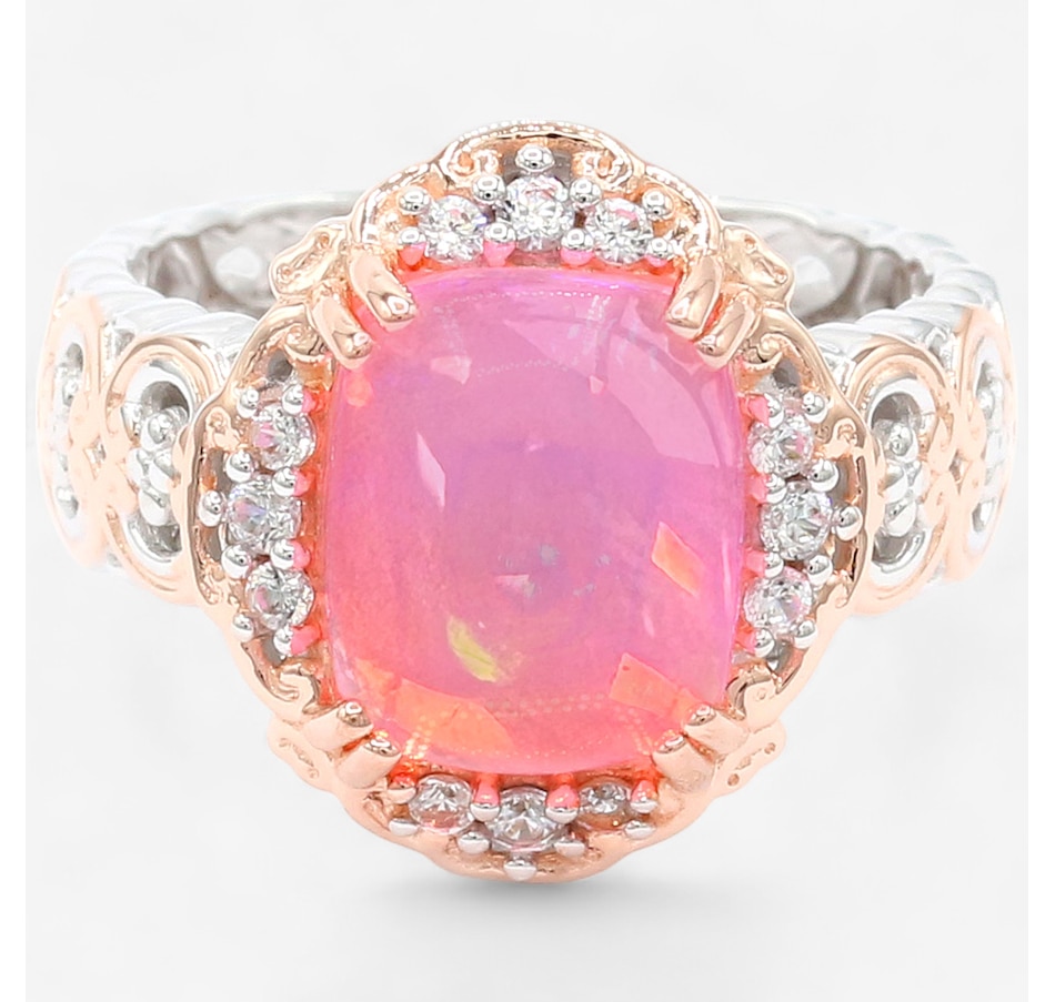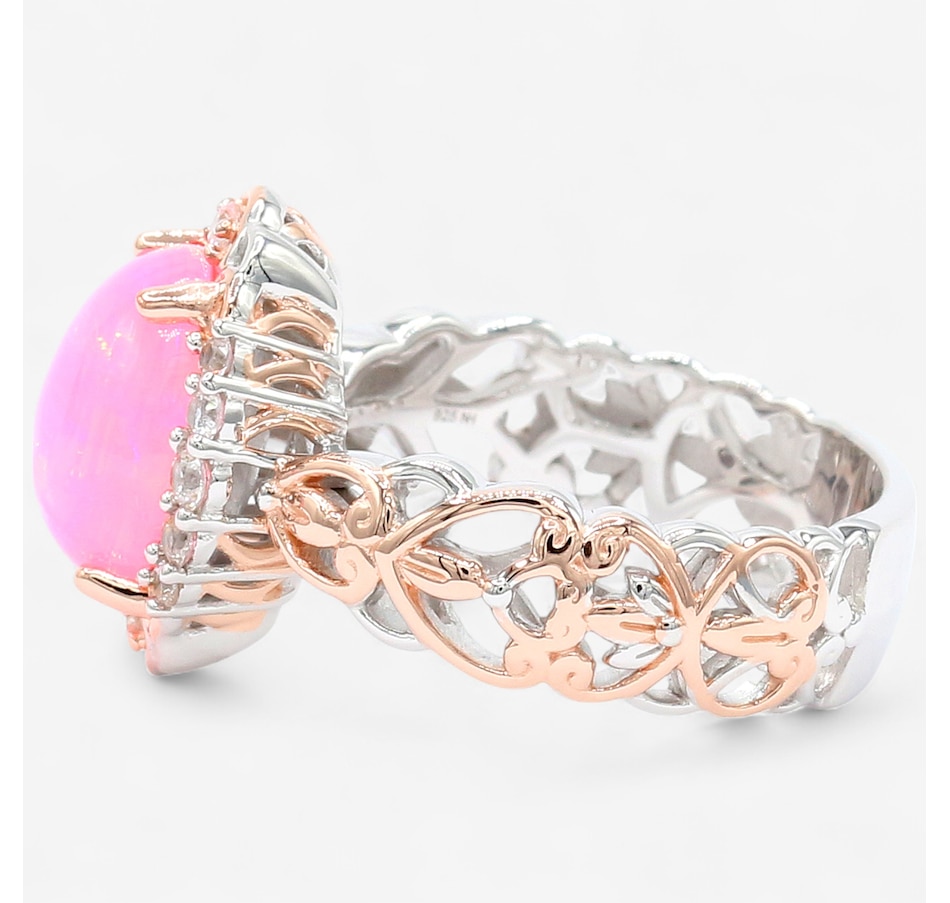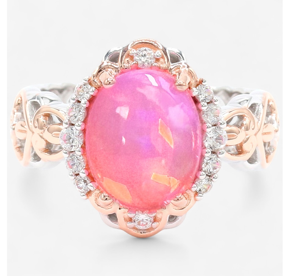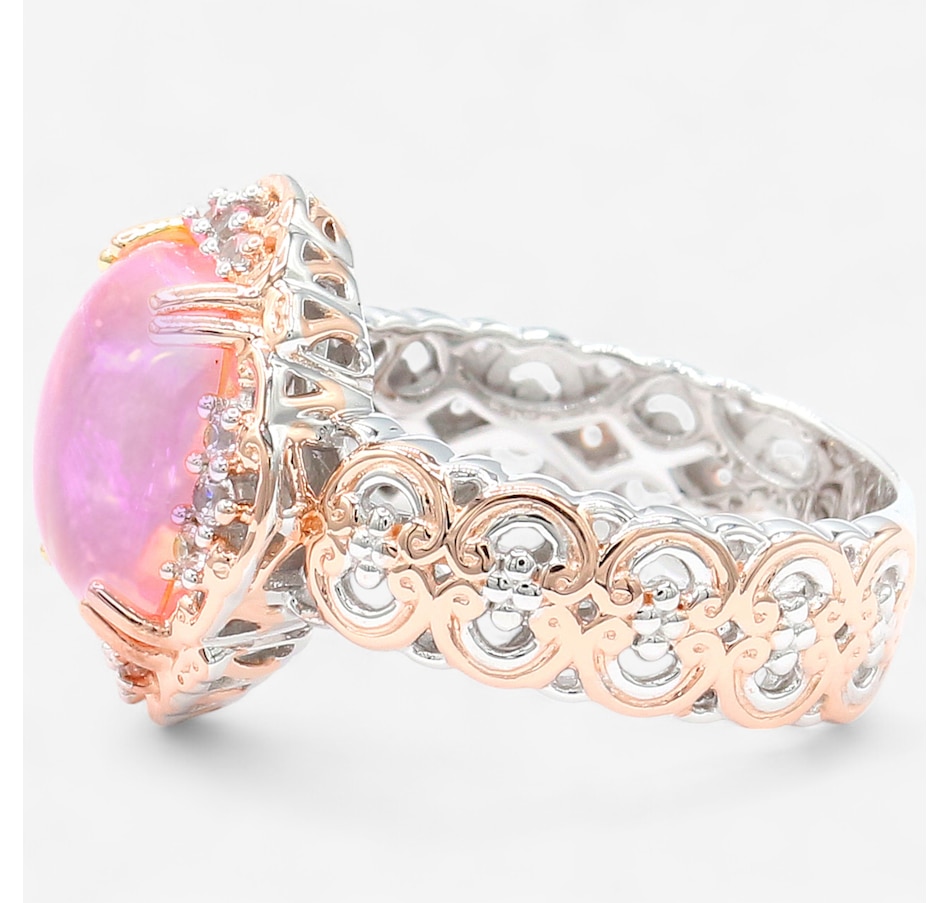 Palladium Silver Pink Ethiopian Opal & White Zircon Ring