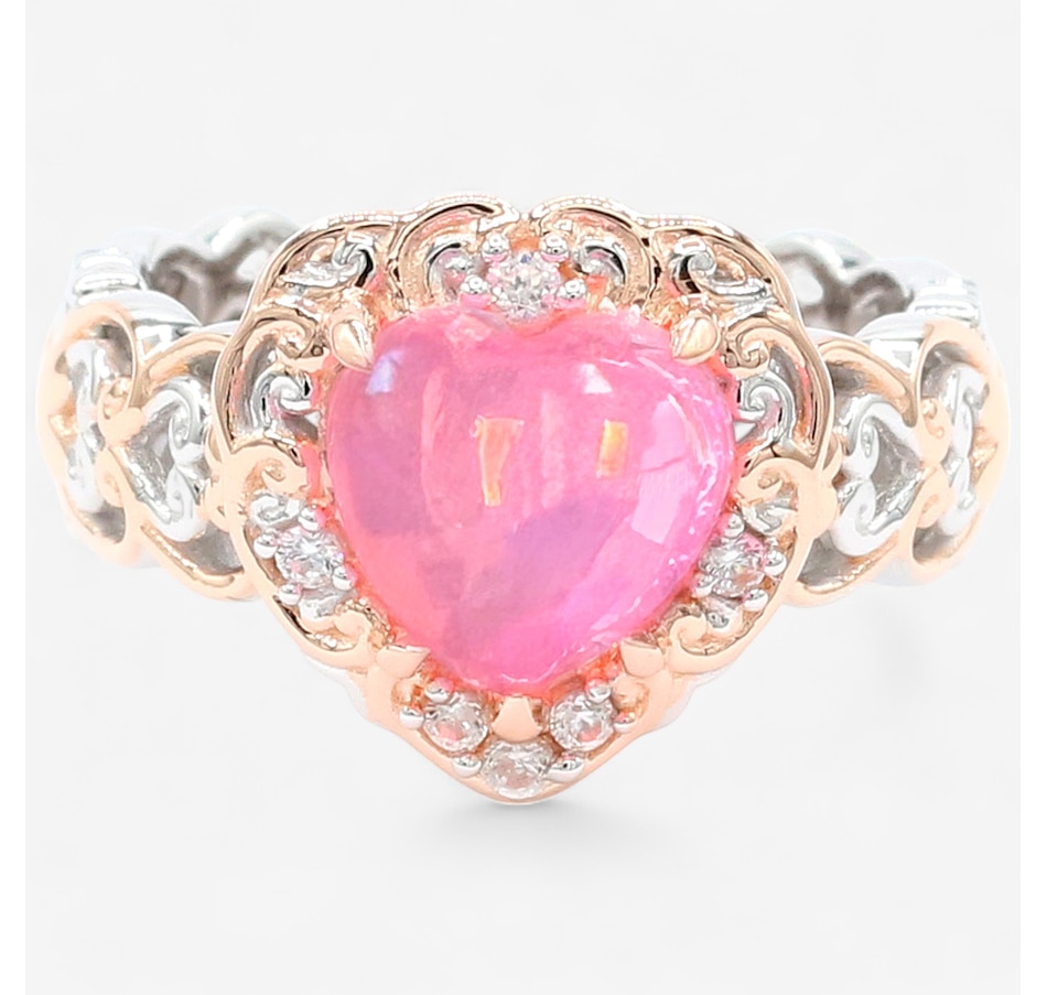 • (1) 9mm heart cabochon prong set pink Ethiopian opal (1.39 av.ctw)