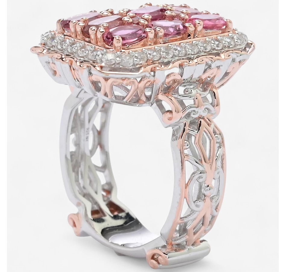 Palladium Silver Pink Tourmaline and White Zircon Ring