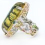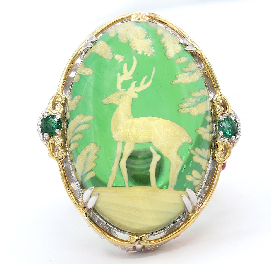 Palladium Silver Reindeer Carved Green Amber Ring