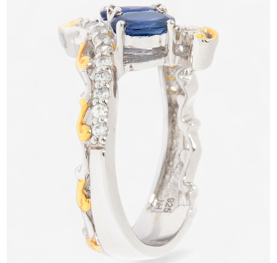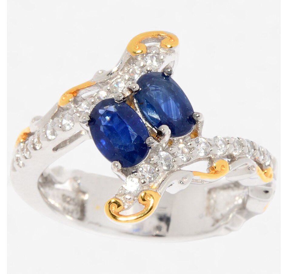 Palladium Silver Royal Blue Sapphire & White Zircon Bypass Sapphire Ring